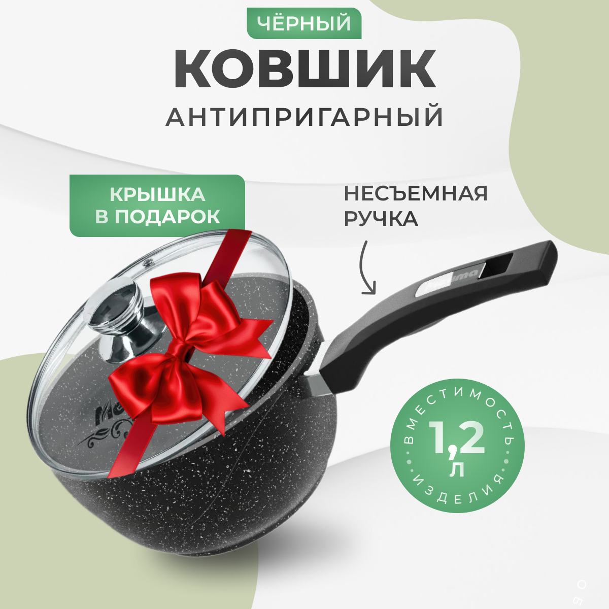 Ковш Мечта 1.2 л Гранит с антипригарным покрытием с несъемной ручкой и крышкой, НЕ индукционная 2 104 ₽