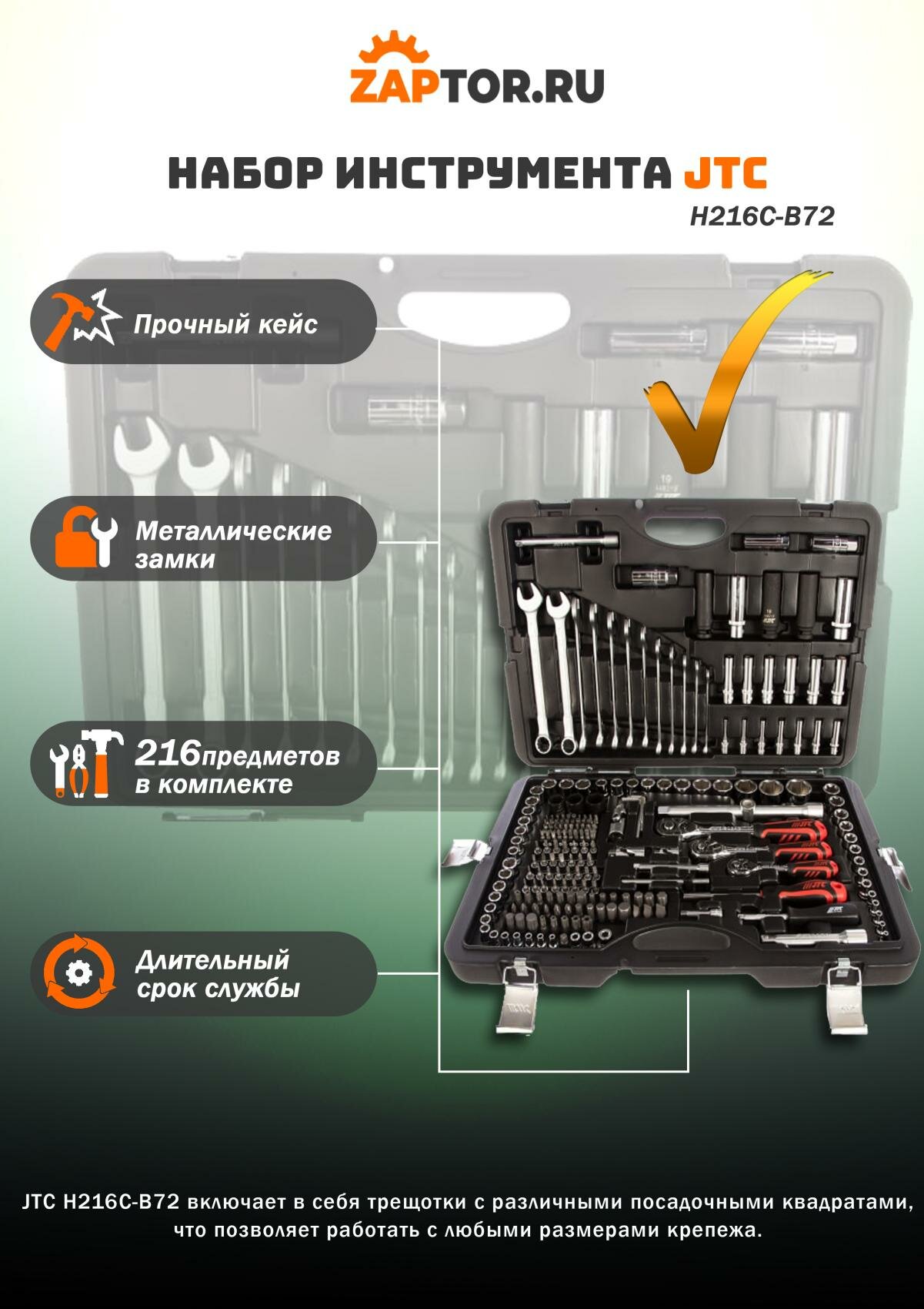 10 цен на Набор инструментов 216 предметов 1/4,1/2 6-ти гран. в кейсе JTC / арт. JTCH216CB72 - (1 шт)