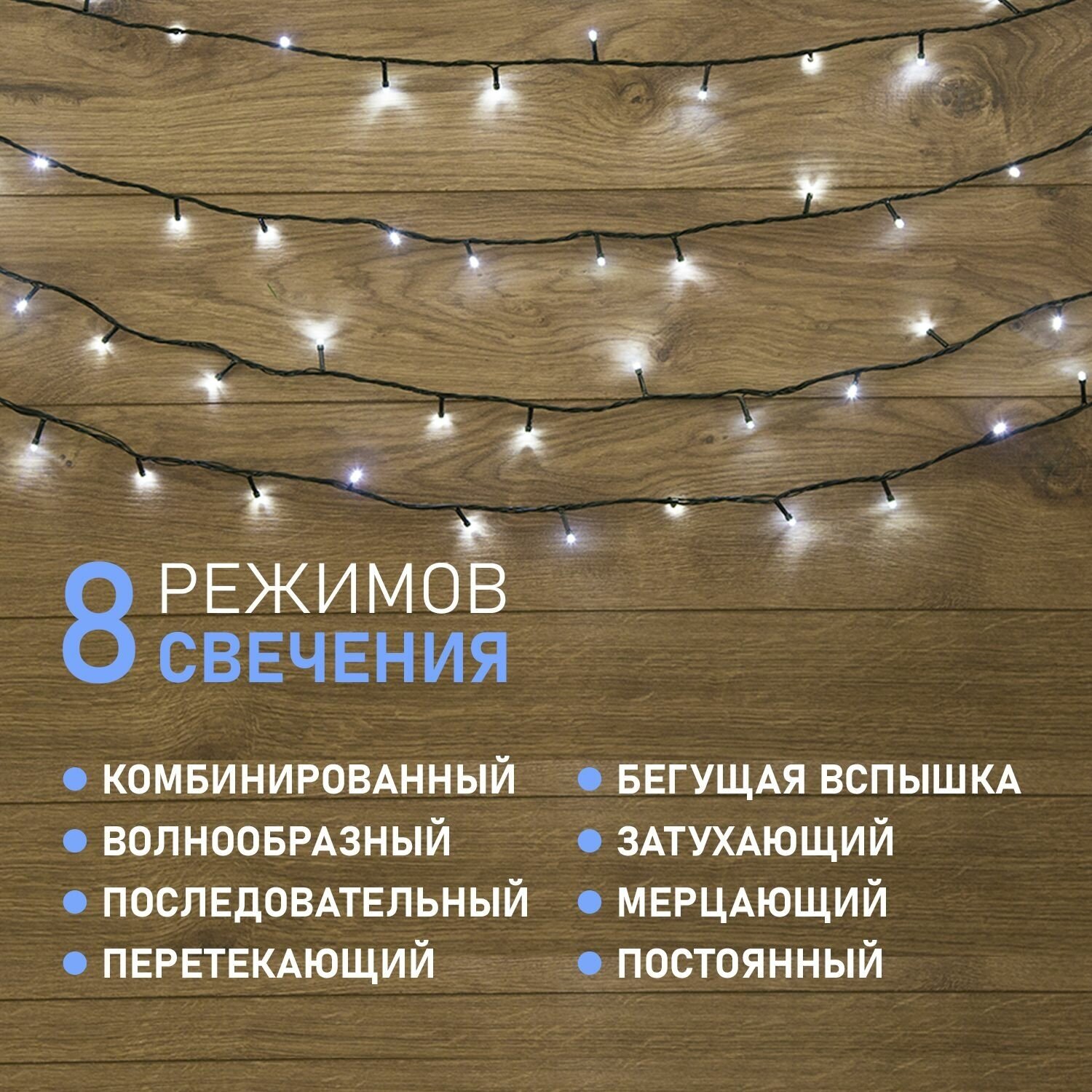 Светодиодная гирлянда NEON-NIGHT "Твинкл-Лайт" 10 м, 8 режимов, 80 белых светодиодов, тёмно-зелёный провод 470 ₽