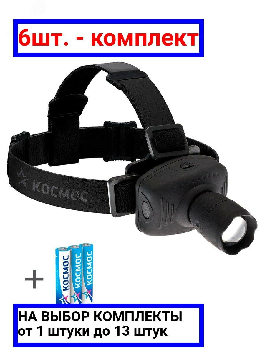 10 цен на 6шт. - Фонарь налобный , 3W LED, 3 батарейки ААА, 180Lm, / Космос; арт. KOC-H3W-LED; оригинал / - комплект 6шт