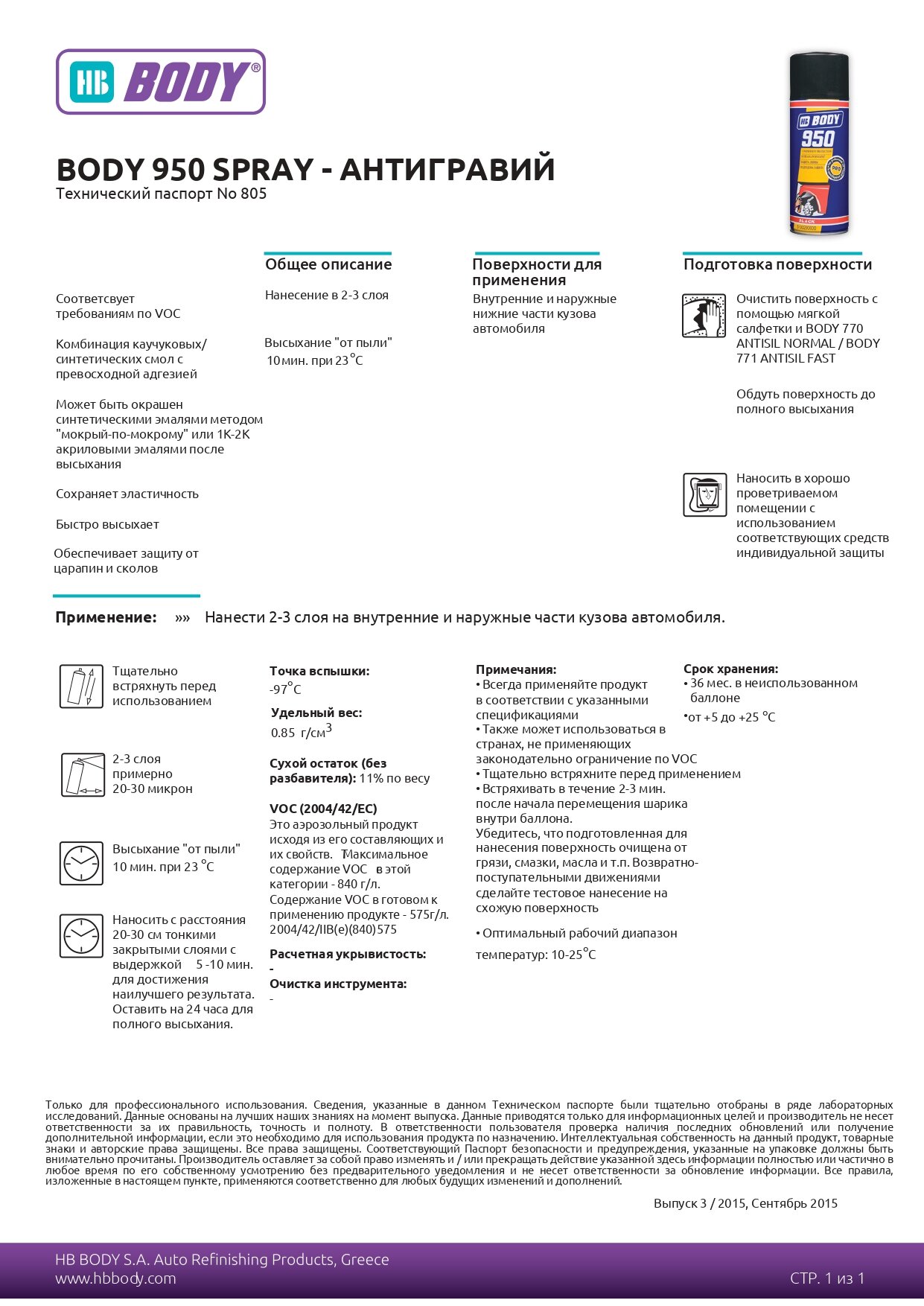 Антикор Серый Спрей 0,4Л Body 950 5100700000 HB BODY арт. 5100700000