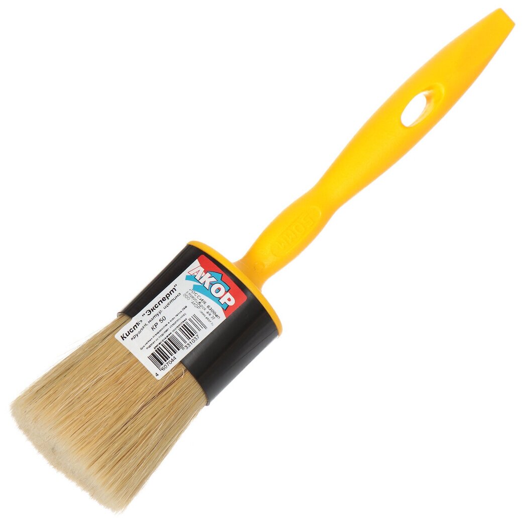Кисть, Акор, круглая "Эксперт", 50мм, в/в 64мм, натуральная щетина
