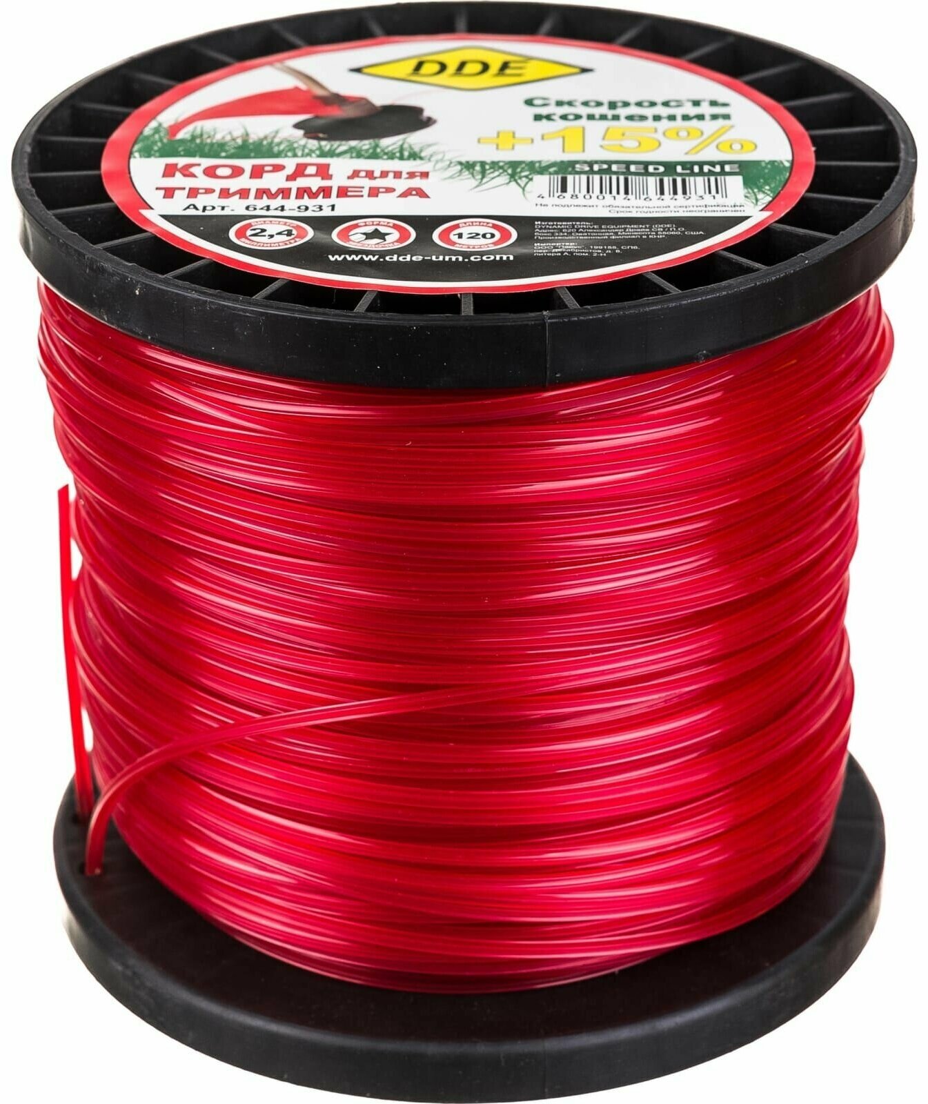 Корд триммерный на катушке DDE "Speed line" (звезда, 2,4ммх116м, красный)