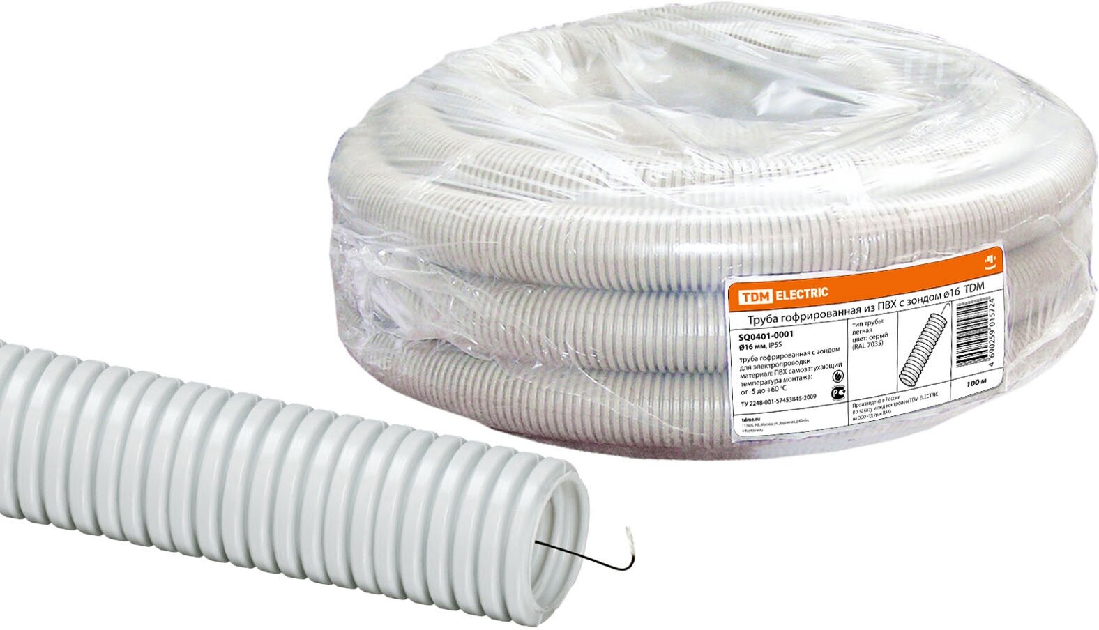 TDM SQ0401-0001 Труба гофрированная ПВХ d 16 с зондом (100 м) легкая .