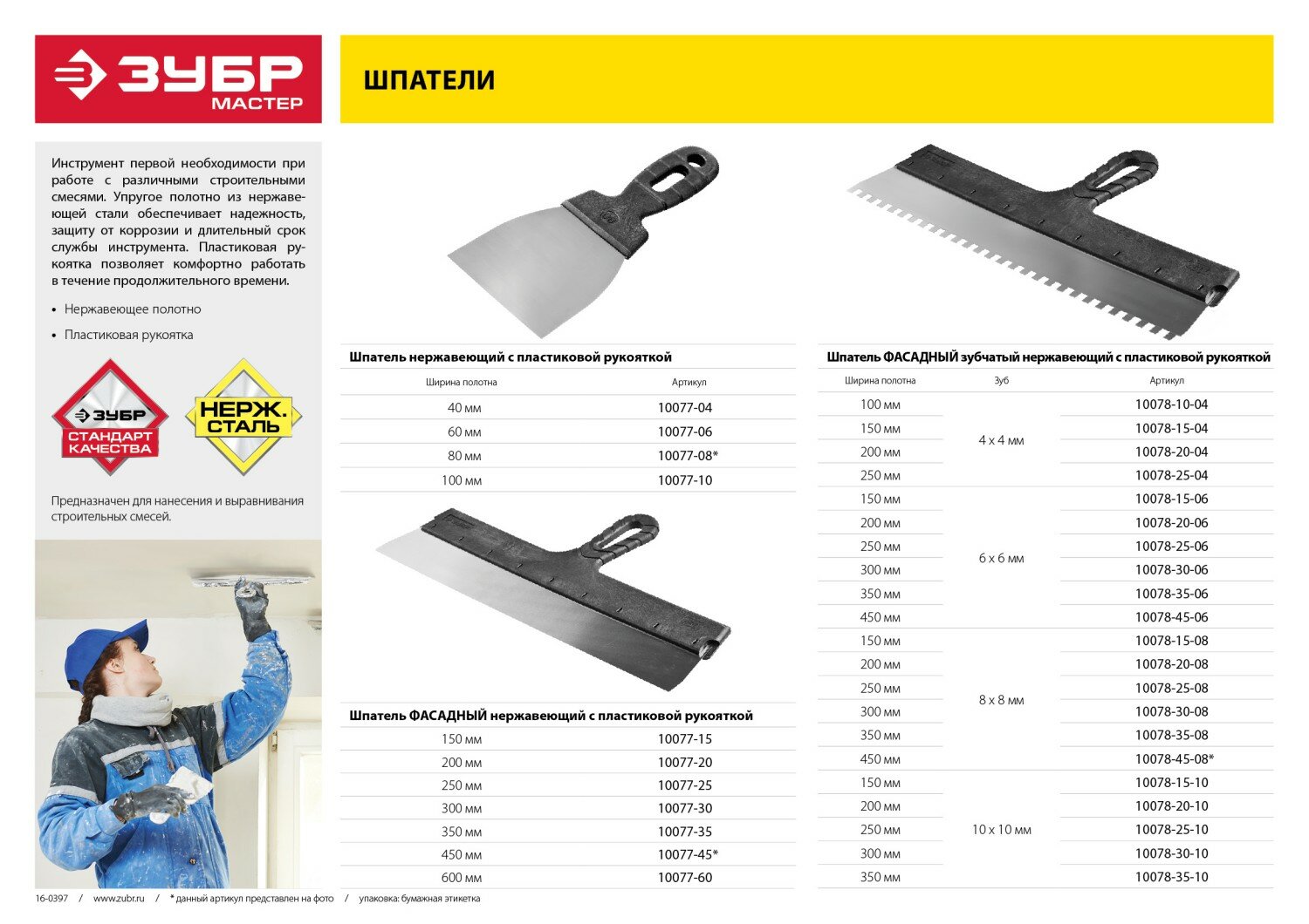 Мы выбрали 10 лучших цен на Шпатель фасадный нержавеющий 250 мм Зубр 10078-25-06. Перед тем как купить Шпатель фасадный нержавеющий 250 мм Зубр 10078-25-06 посмотрите найденные предложения из Яндекс Маркета и других сайтов на основе XML фидов.