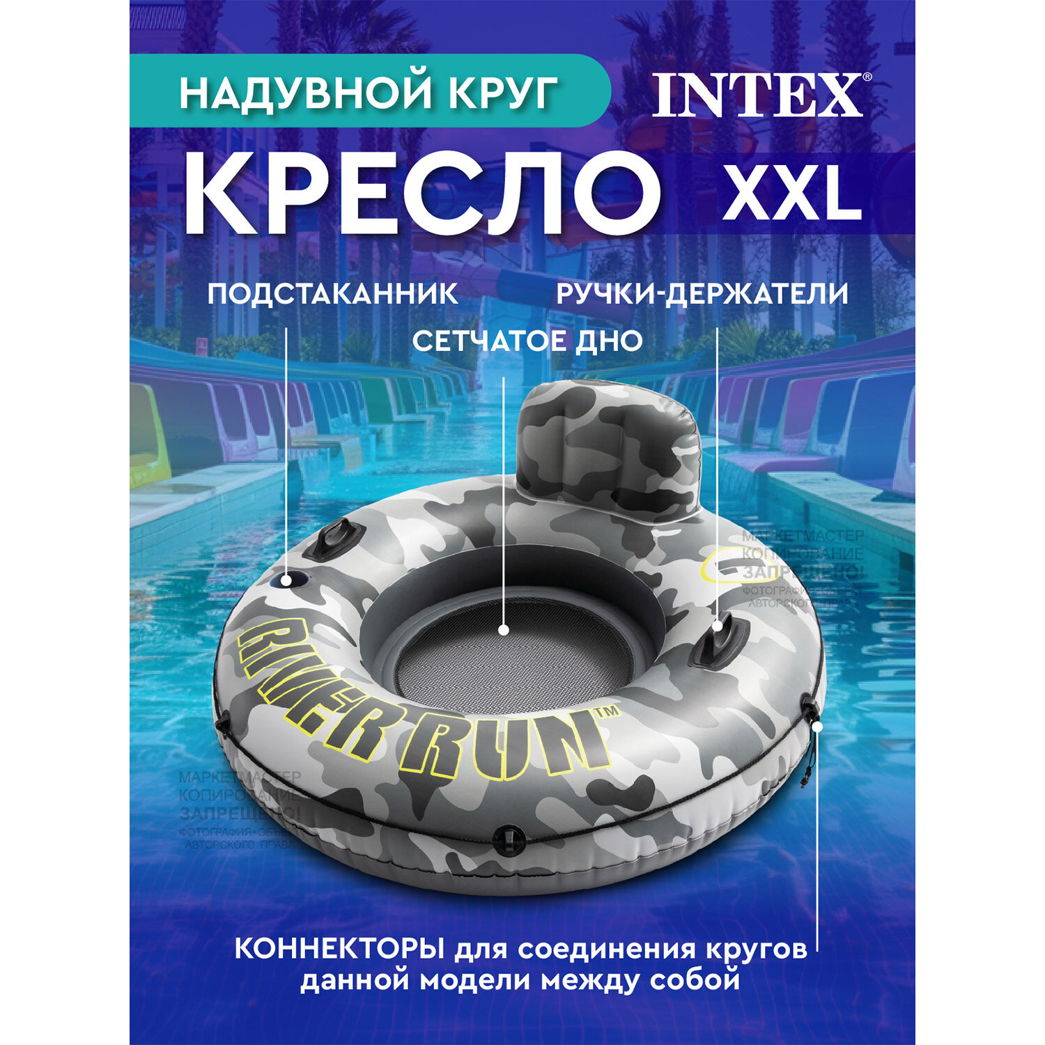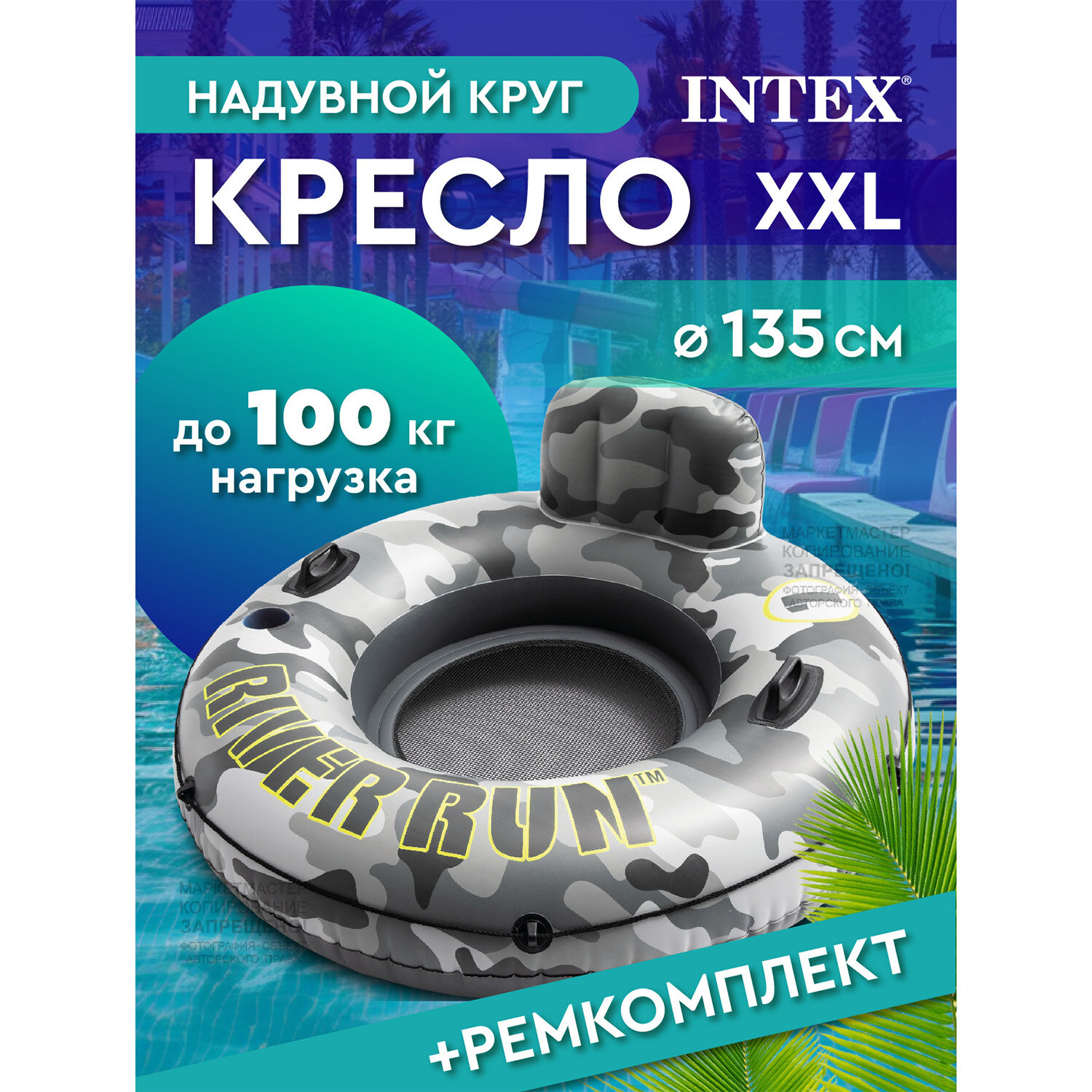 Круг для плавания INTEX с ручками и спинкой "Сплав по реке", 135 см, вес до 100 кг, 56835EU информация: