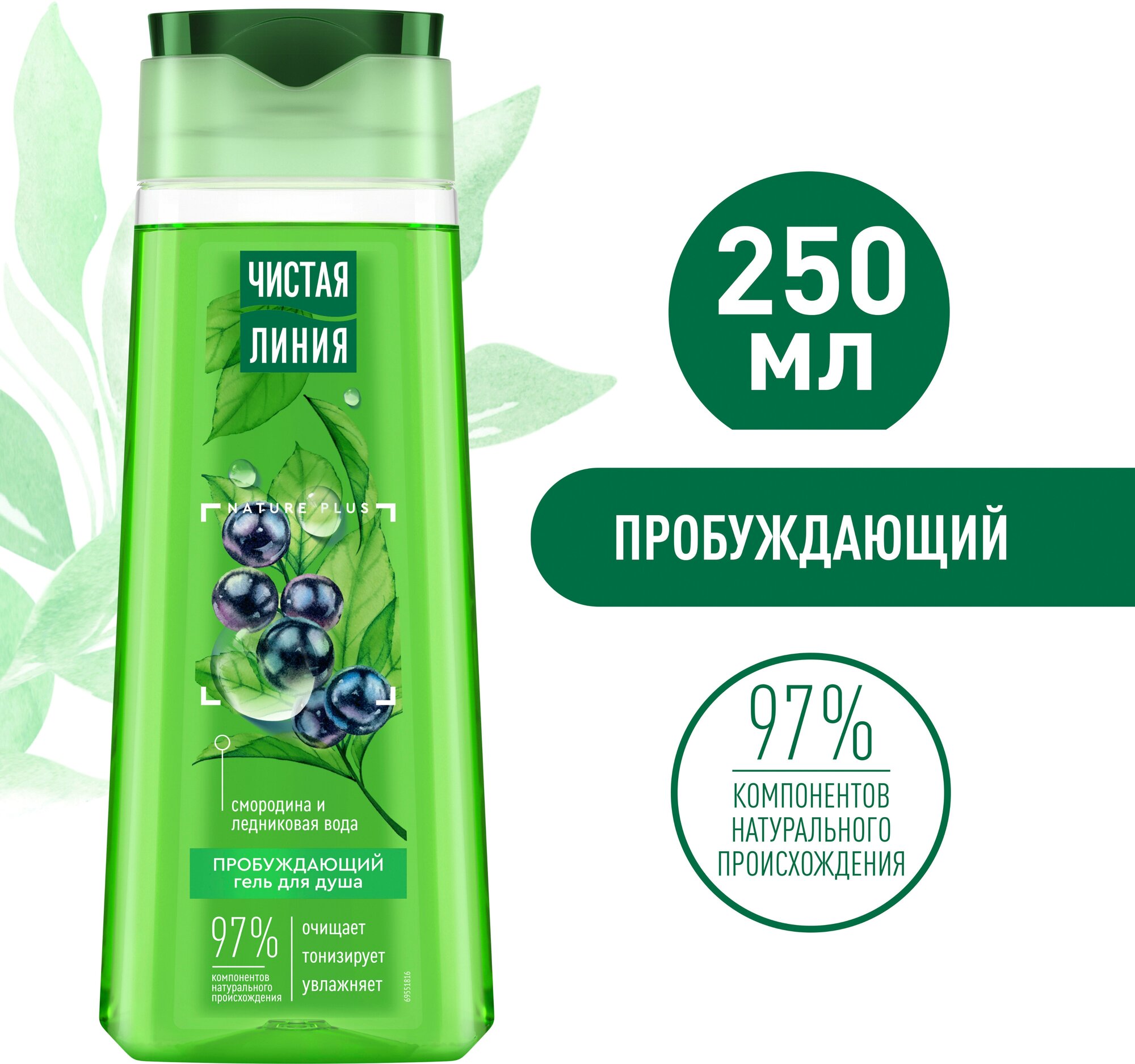 Чистая Линия гель для душа пробуждающий на 100% натуральной основе со смородиной и ледниковой водой 250 мл