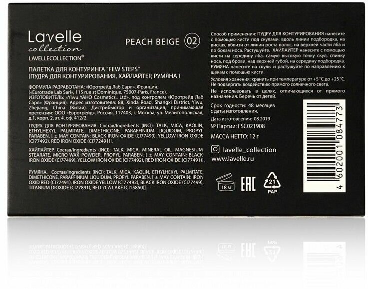 10 цен на Lavelle Collection Палетка для контуринга FEW STEPS тон 02 Peach Beige