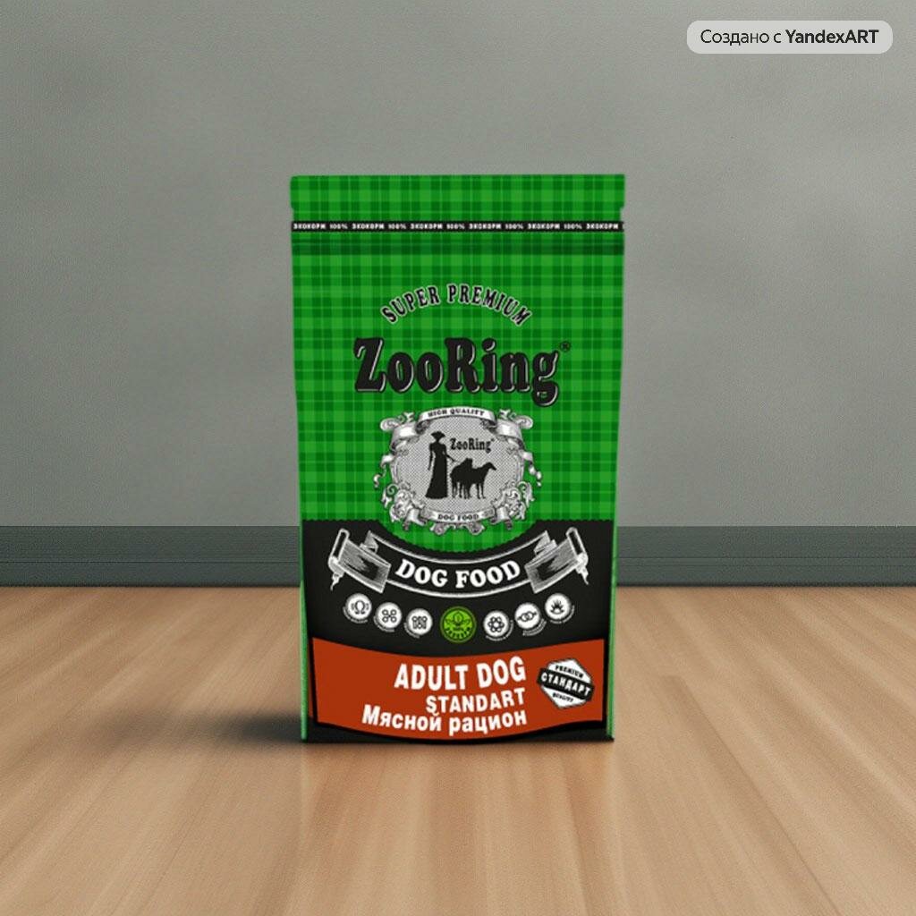 Сухой корм для собак ZooRing Adult Dog Standart мясной рацион, 2 кг. Для средних и крупных пород информация: