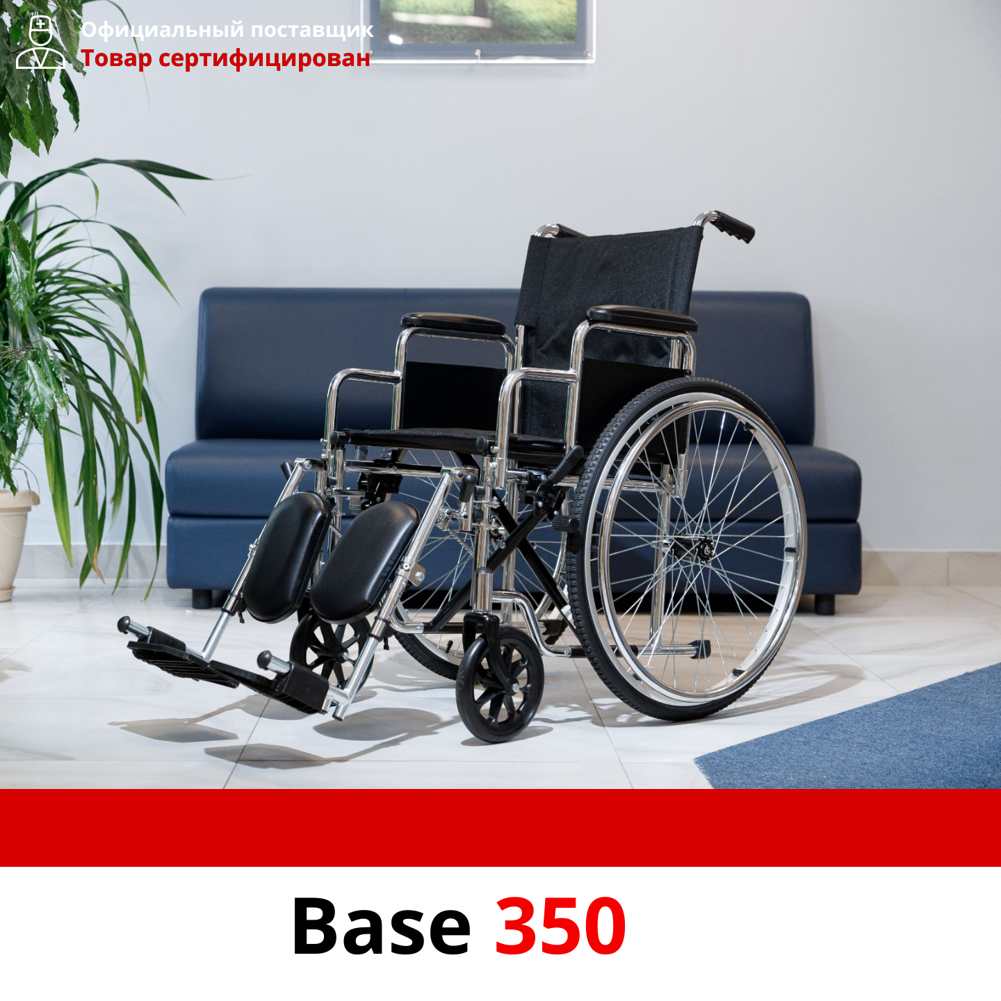 Кресло-коляска инвалидная Ortonica Base 150/ Base 350 43UU складное прогулочное с регулируемыми подножками ширина сиденья 43 см литые колеса Код ФСС 7-01-06