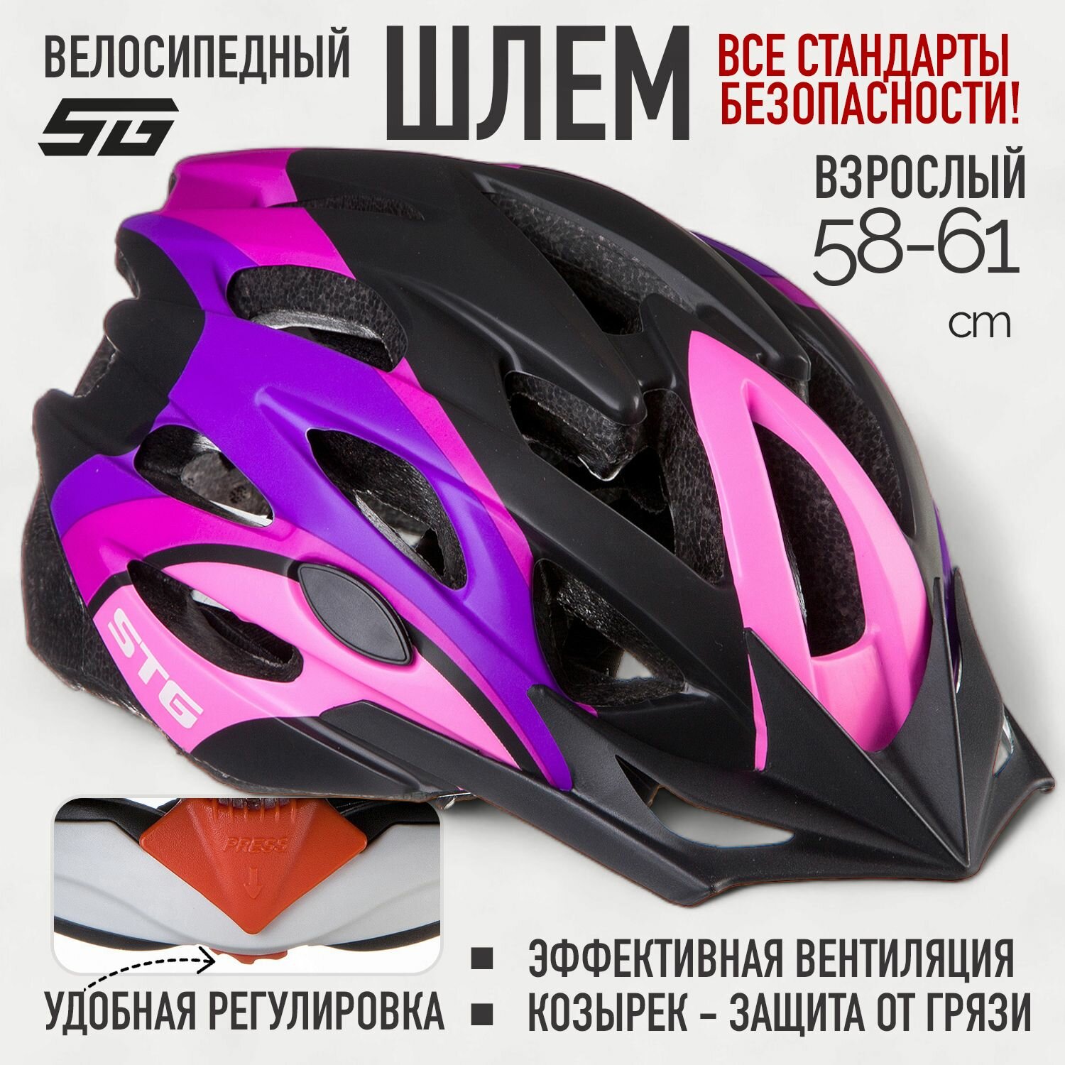 STG Шлем велосипедный STG MV29-A (M (55-58), Розовый - фиолетовый - чёрный)
