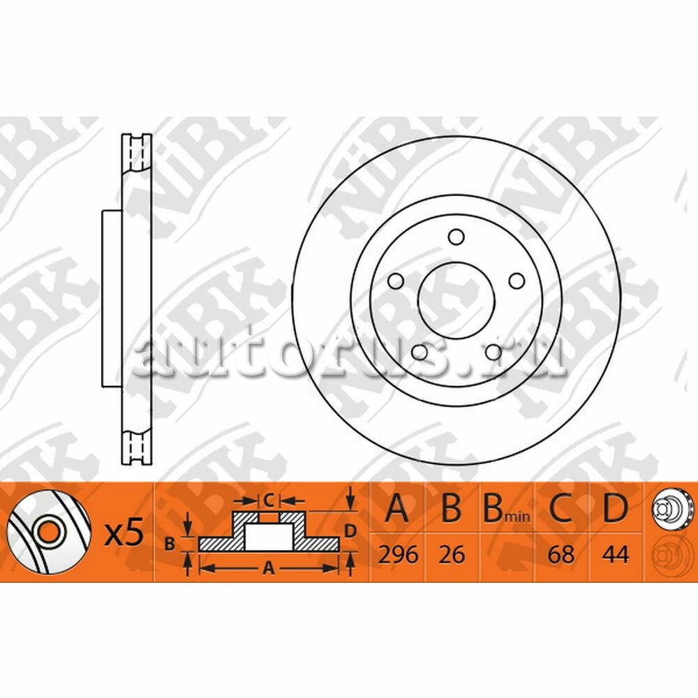 Диск тормозной передний вентилируемый [296x26] 5 отв. NIBK / арт. RN1303 - (1 шт) информация:
