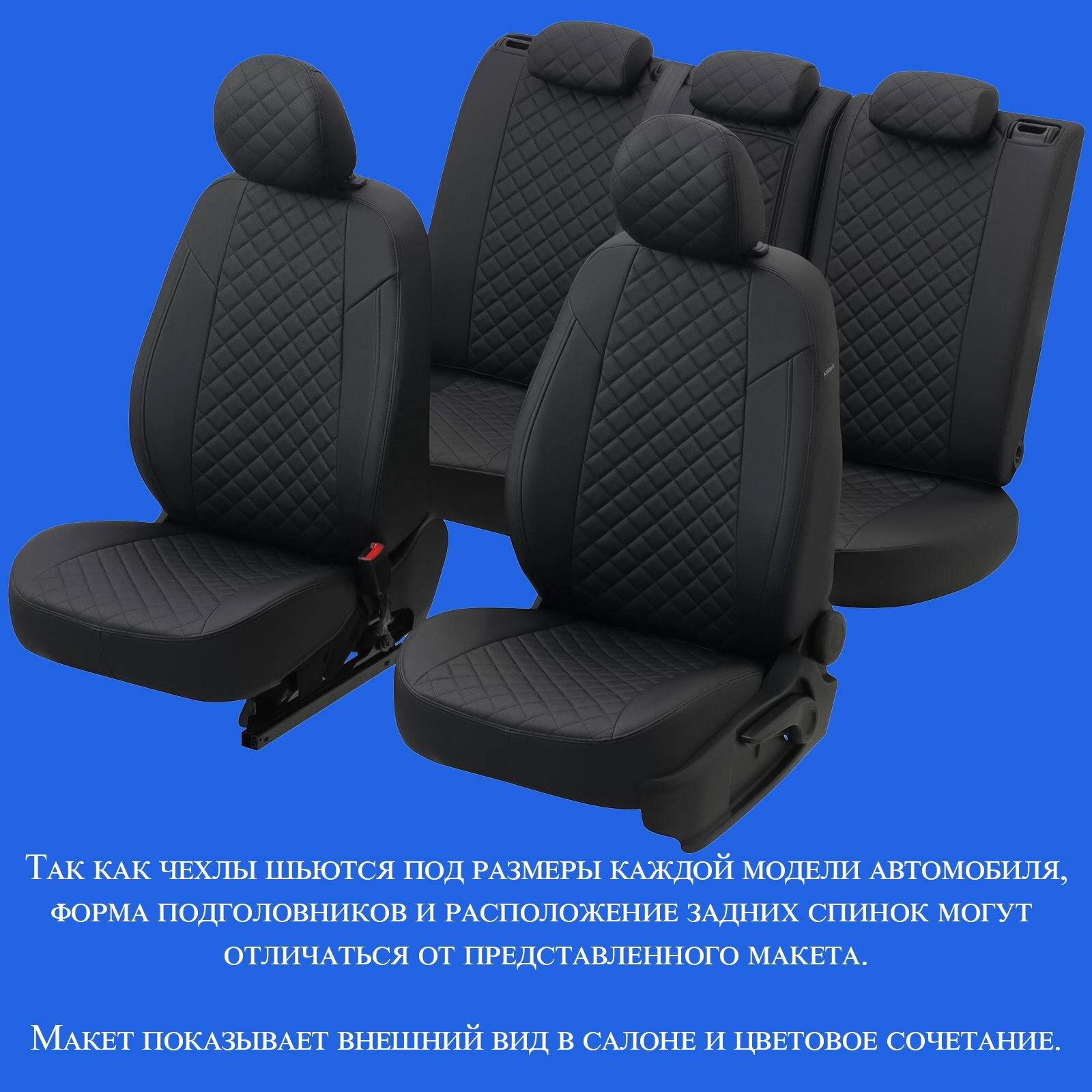 Комплект чехлов Автопилот Алькантара ромб Mitsubishi Lancer 10 Sd с 07-11г. (комплектация invite) Черный + Синий 13 640 ₽