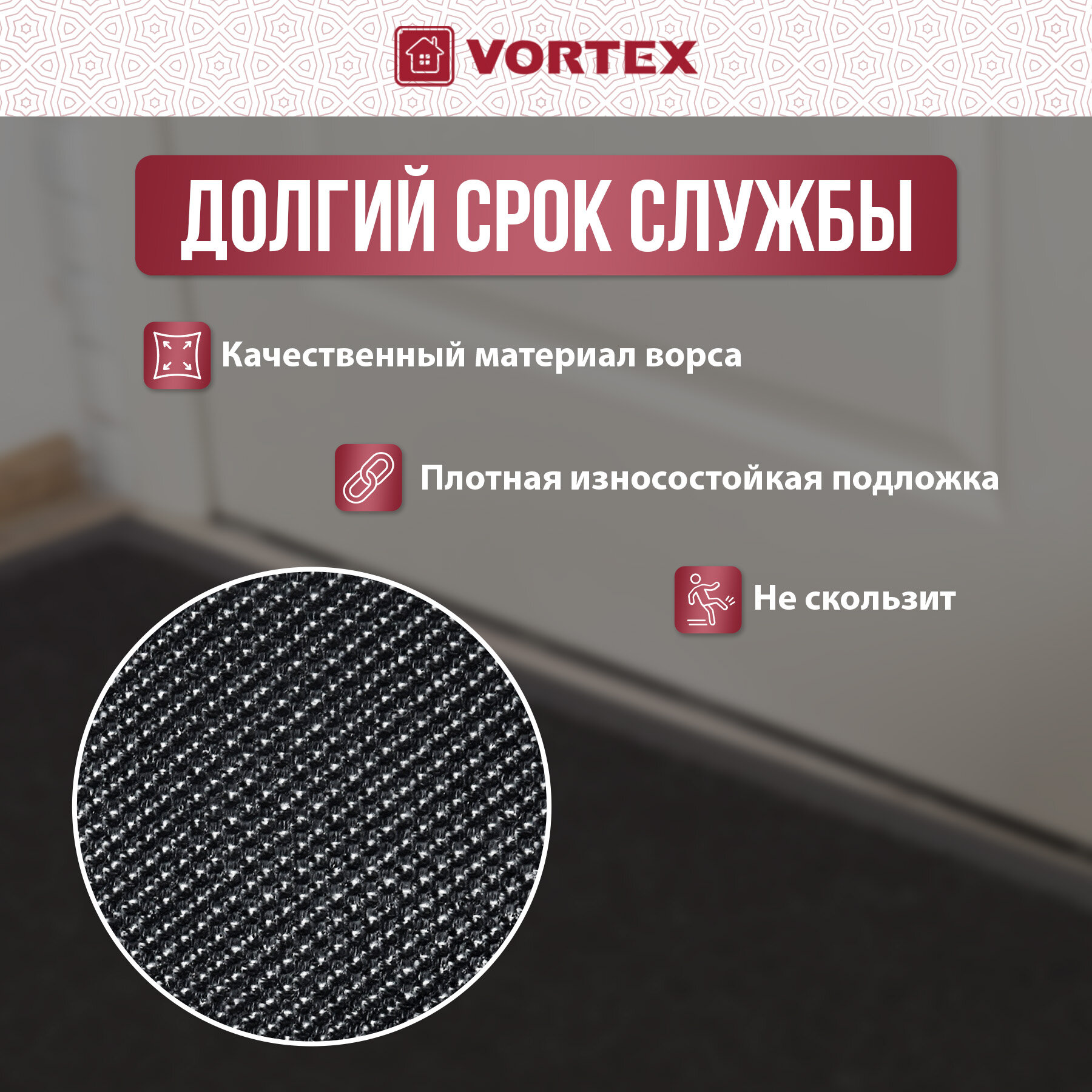 Придверный коврик VORTEX Trip, красный, 0.6 х 0.4 м
