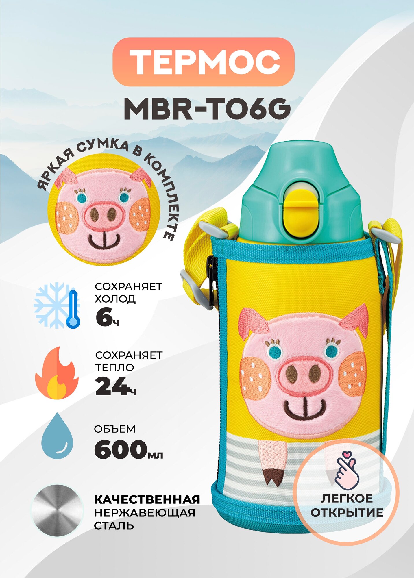 Термос Tiger детский MBR-T06G Pig 0,6 л информация: