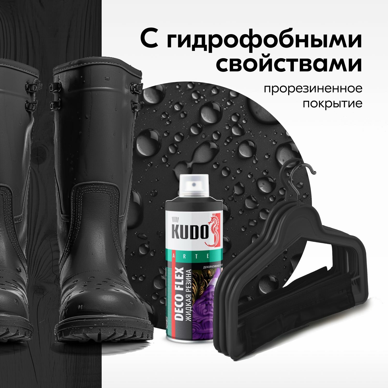 KUDO Краска для декоративных работ DECO FLEX (жидкая резина) чёрная KU-5302