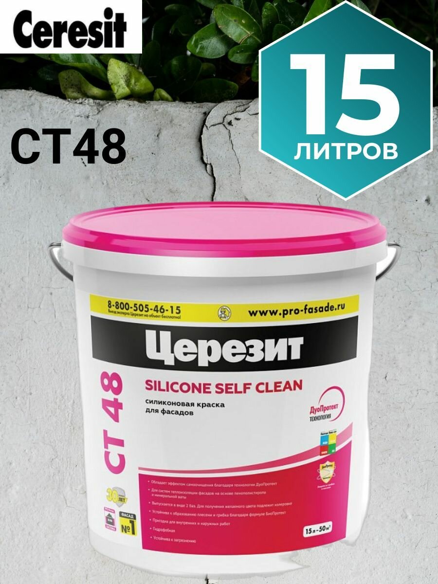 10 цен на Краска фасадная силиконовая Церезит CT48 матовая, транспарент, 15л