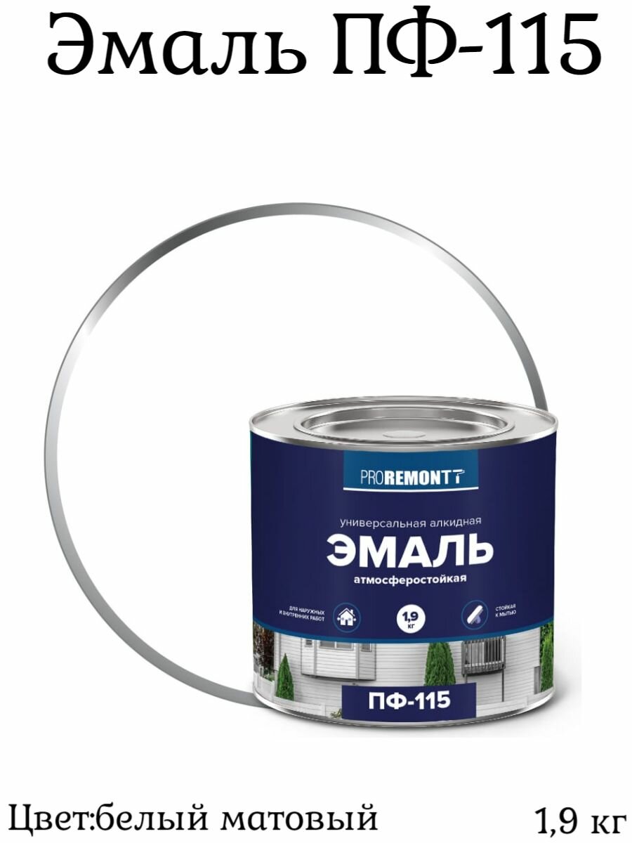 Эмаль ПФ-115 бел.мат. 1,9кг PROREMONTТ (Лакра) 859 ₽