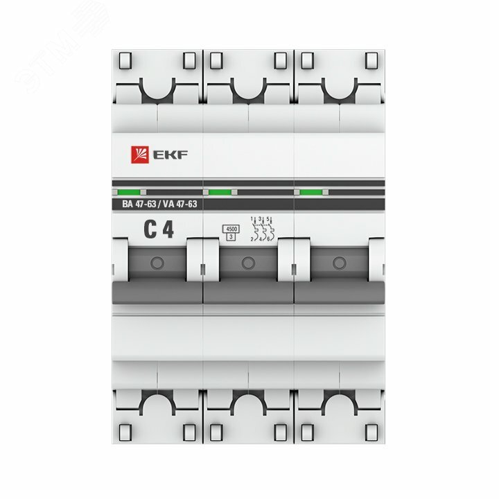 2шт. - Выключатель автоматический трехполюсный 4А С ВА47-63 4.5кА PROxima / EKF; арт. mcb4763-3-04C-pro; оригинал / - комплект 2шт информация: