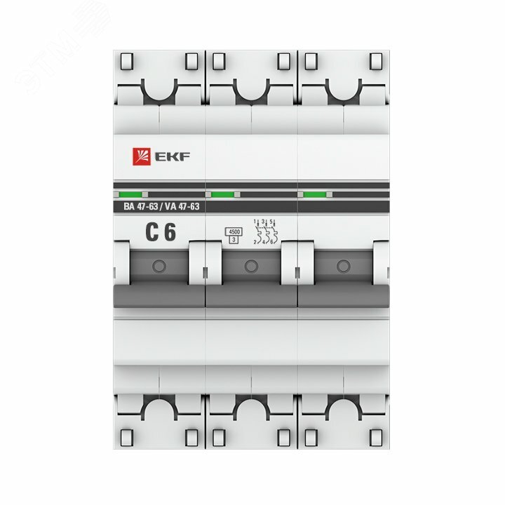 2шт. - Выключатель автоматический трехполюсный 6А С ВА47-63 4.5кА PROxima / EKF; арт. mcb4763-3-06C-pro; оригинал / - комплект 2шт информация: