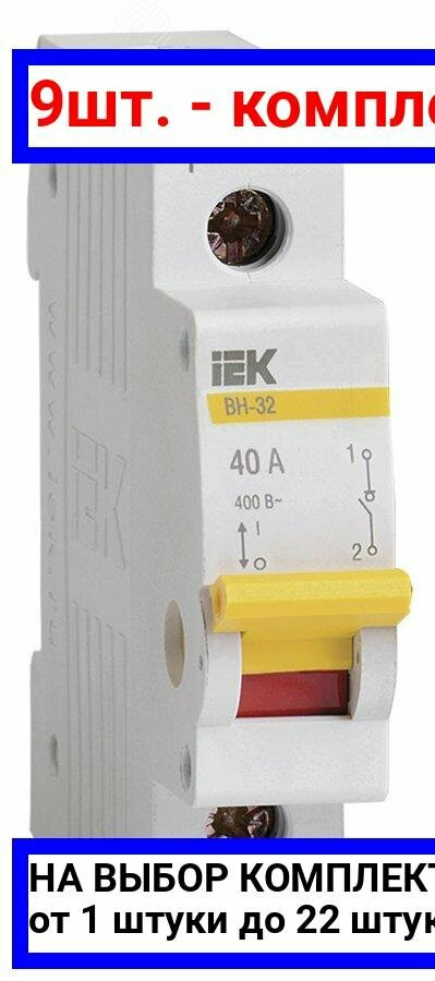 9шт. - Выключатель нагрузки 1п ВН-32 40А / IEK; арт. MNV10-1-040; оригинал / - комплект 9шт
