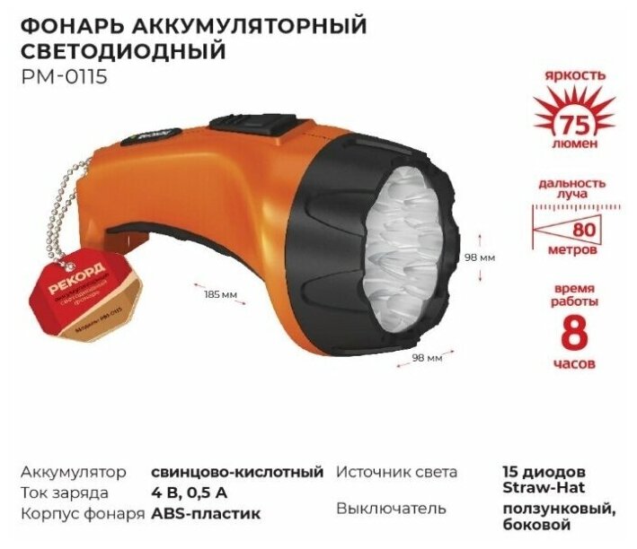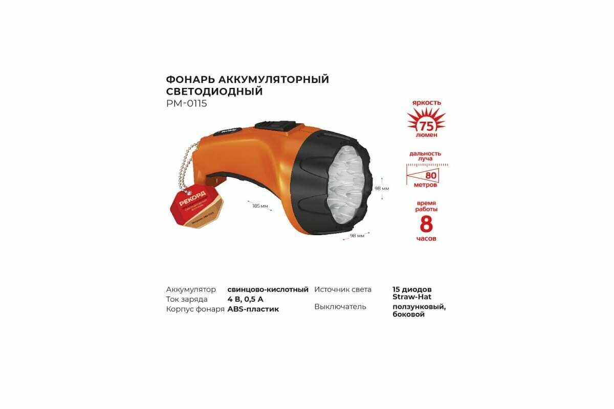 Фонарь светодиодный Рекорд PM-0115 аккумуляторный, оранжевый