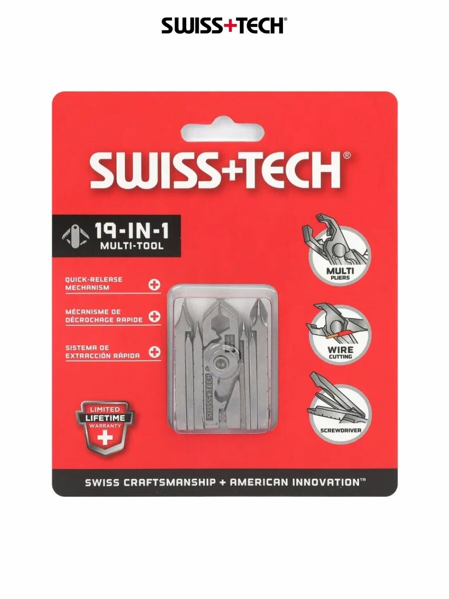 Мультитул Swiss+Tech 17 в 1 (Мультиинструмент) с клипсой для крепления на карман или пояс.