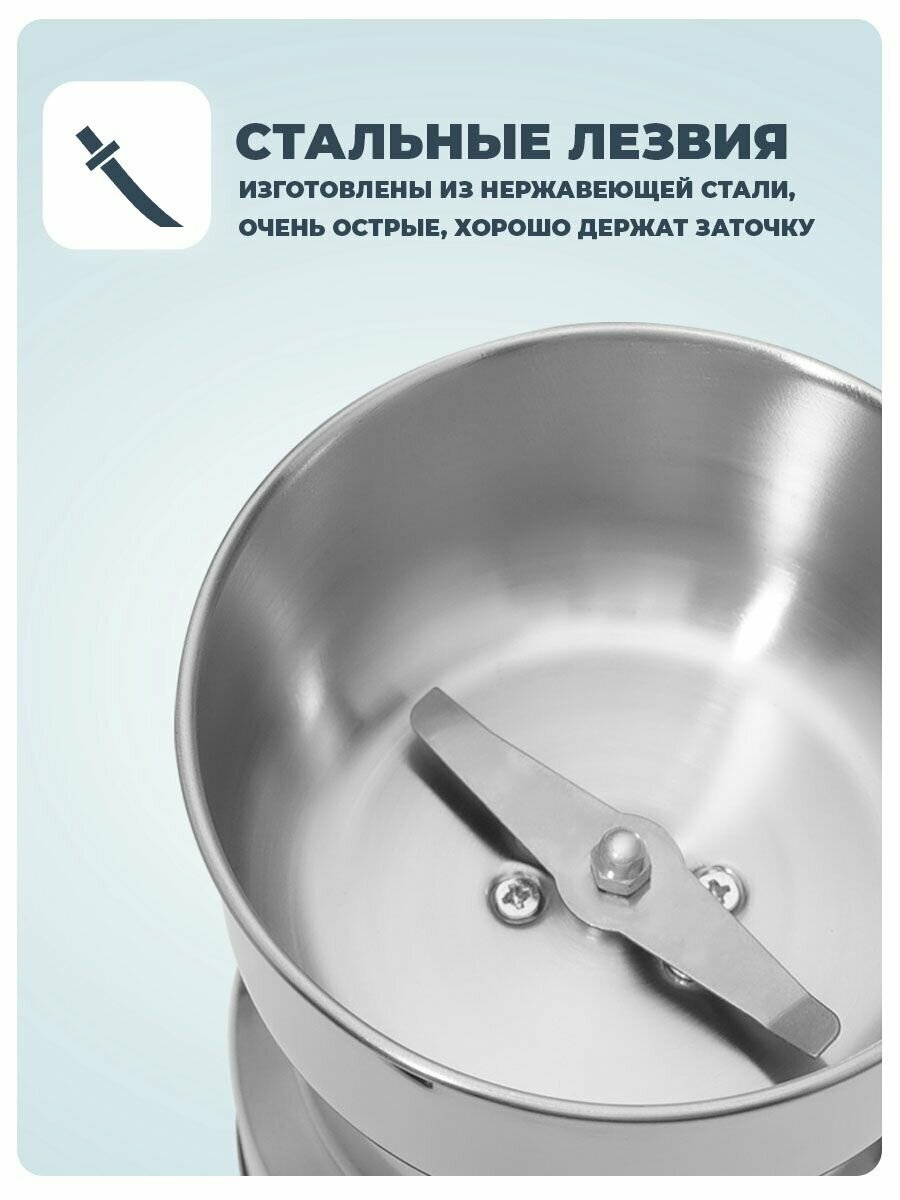 Кофемолка GOODHELPER СG-К02, электрическая, ножевая, 150 Вт, 50 г, серебристая информация: