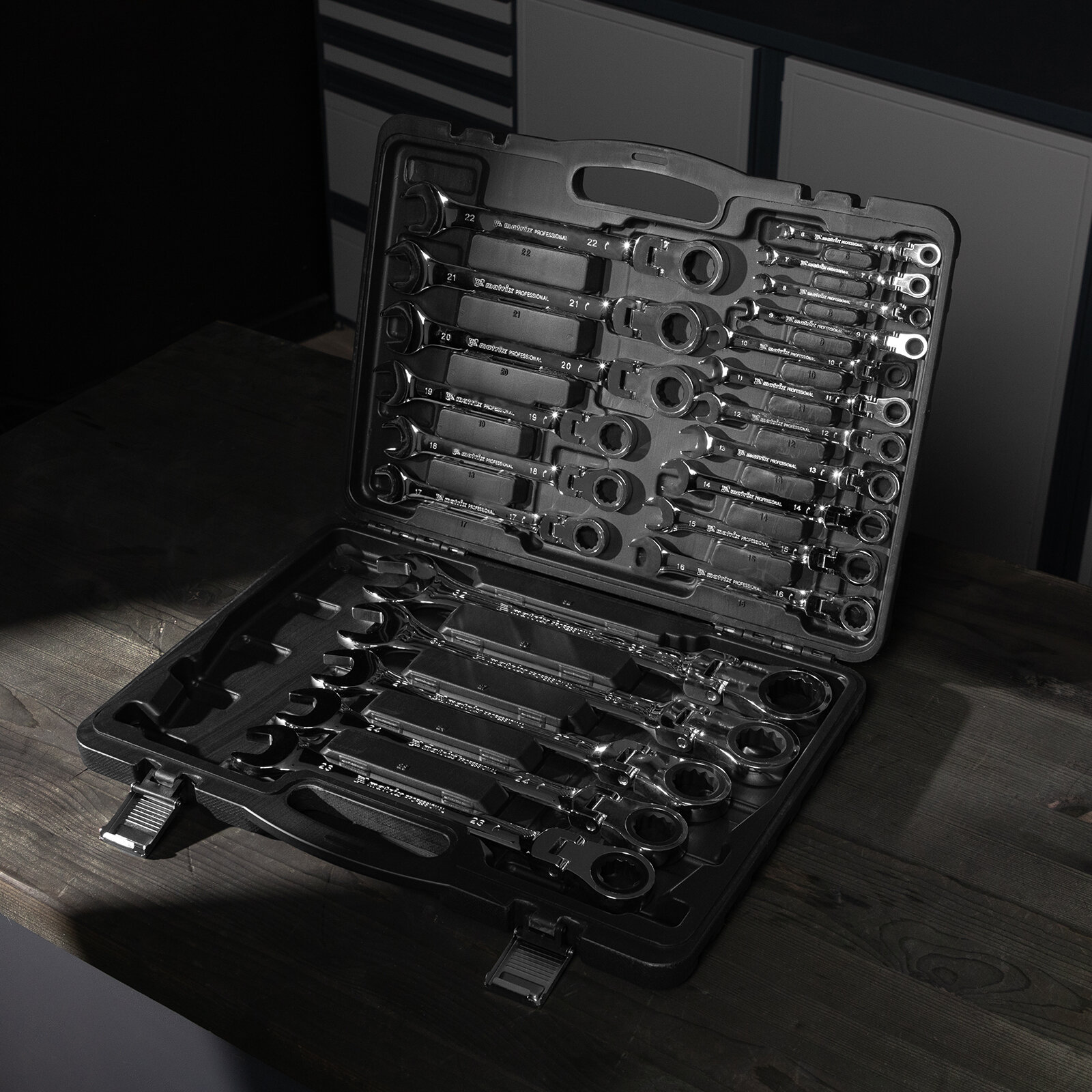 Набор ключей комбинированных, трещоточных шарнирных 22 шт. Matrix (14800) информация: