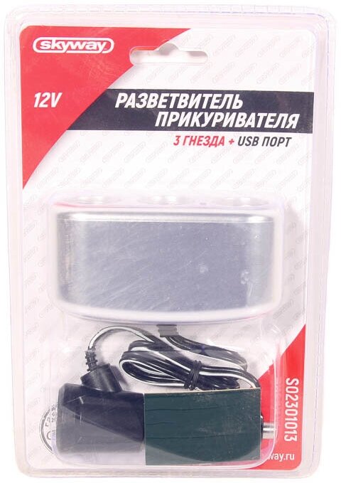 SKYWAY S02301013 SL Разветвитель прикуривателя 3-х гнездовой 12V 1USB SKYWAY