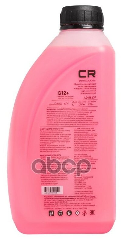 CARVILLE RACING L2018207 Антифриз CARVILLE RACING CR G12+ готовый -40C красный 1 л L2018207 741 ₽
