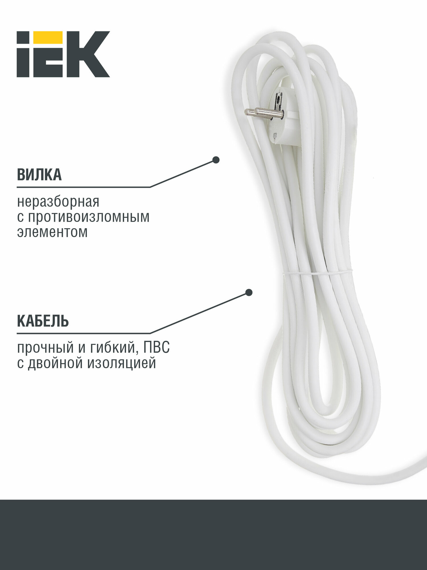 Удлинитель IEK У03, ПВС 3 x 1 мм², с заземлением, 3 розетки, 5 м, белый 1 030 ₽