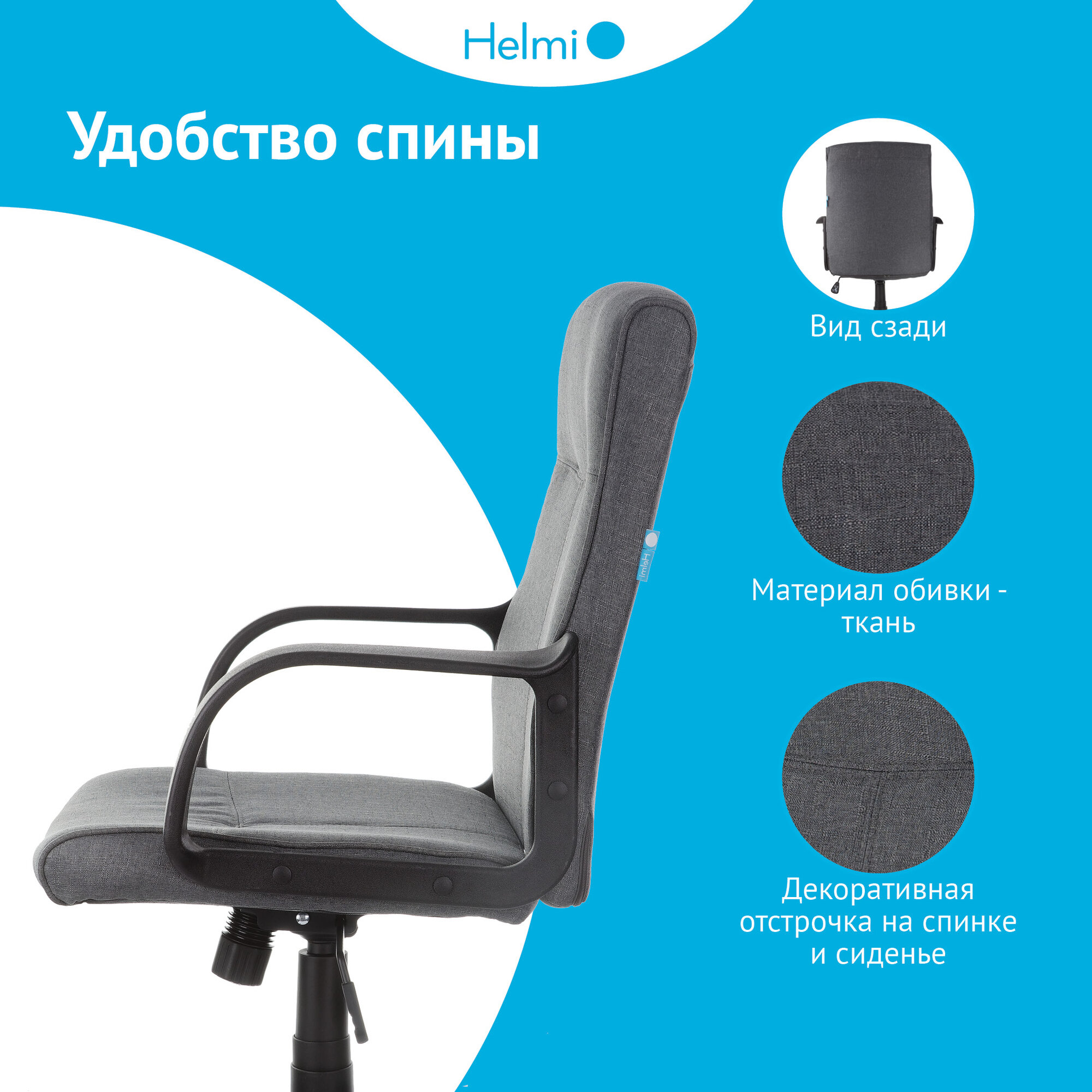 Компьютерное кресло Helmi HL-M03 "Referent"/Мягкое сиденье из серой ткани, с подлокотниками, на колесиках, с регулируемой спинкой/Офисный компьютерный стул, мебель для дома 9 444 ₽