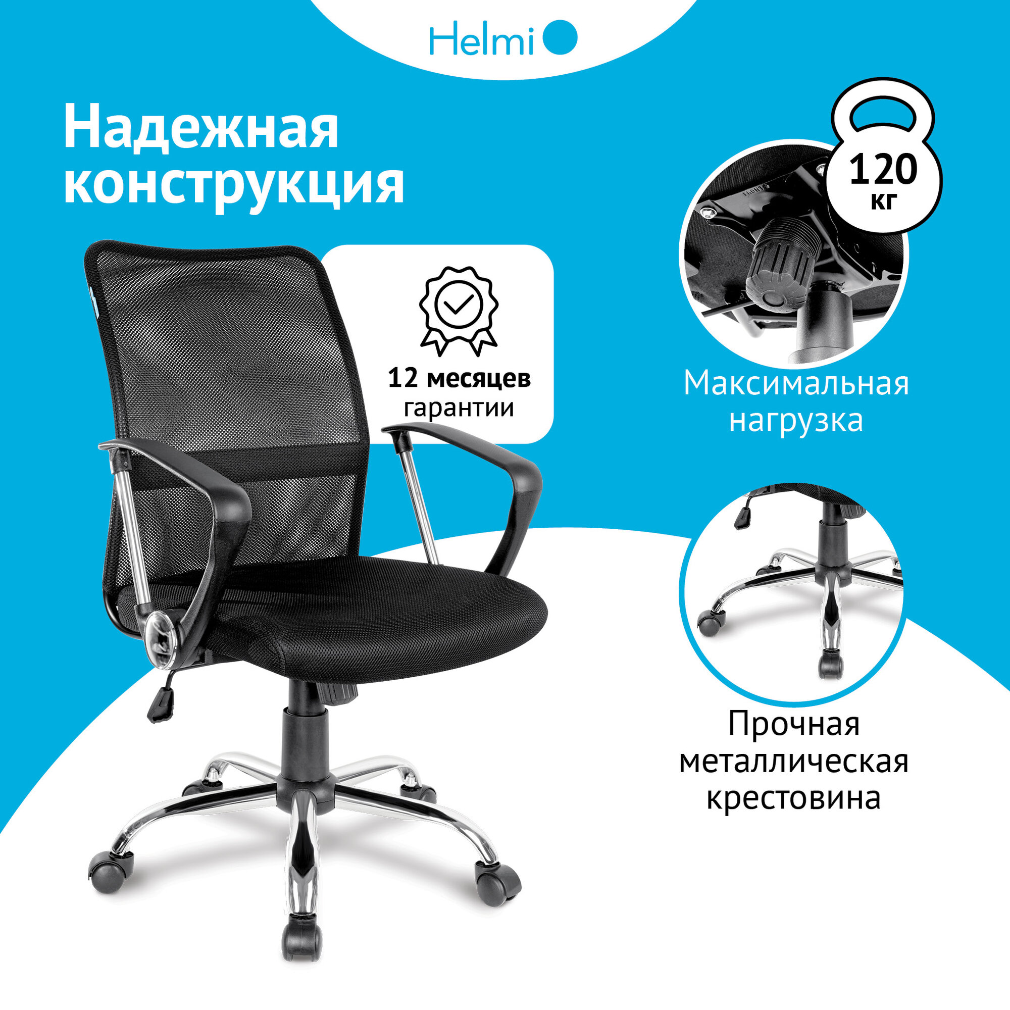 Кресло офисное Helmi HL-M09, ткань/сетка черная, механизм качания, хром 10 755 ₽