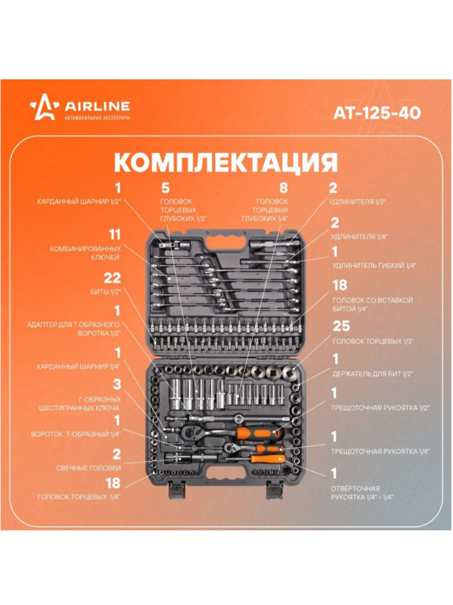 Набор инструментов универсальный 125пр. (головки 1/2", 1/4") кейс AT-125-40 AIRLINE