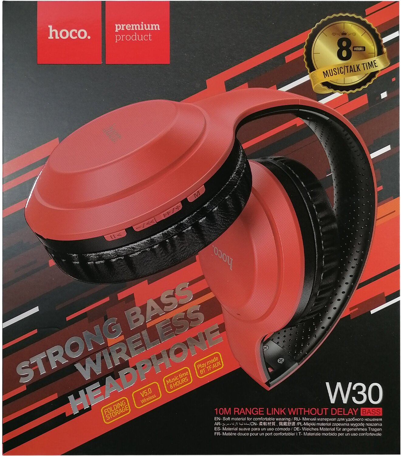 Bluetooth-наушники полноразмерные Hoco W30, красно-черные, 1 шт