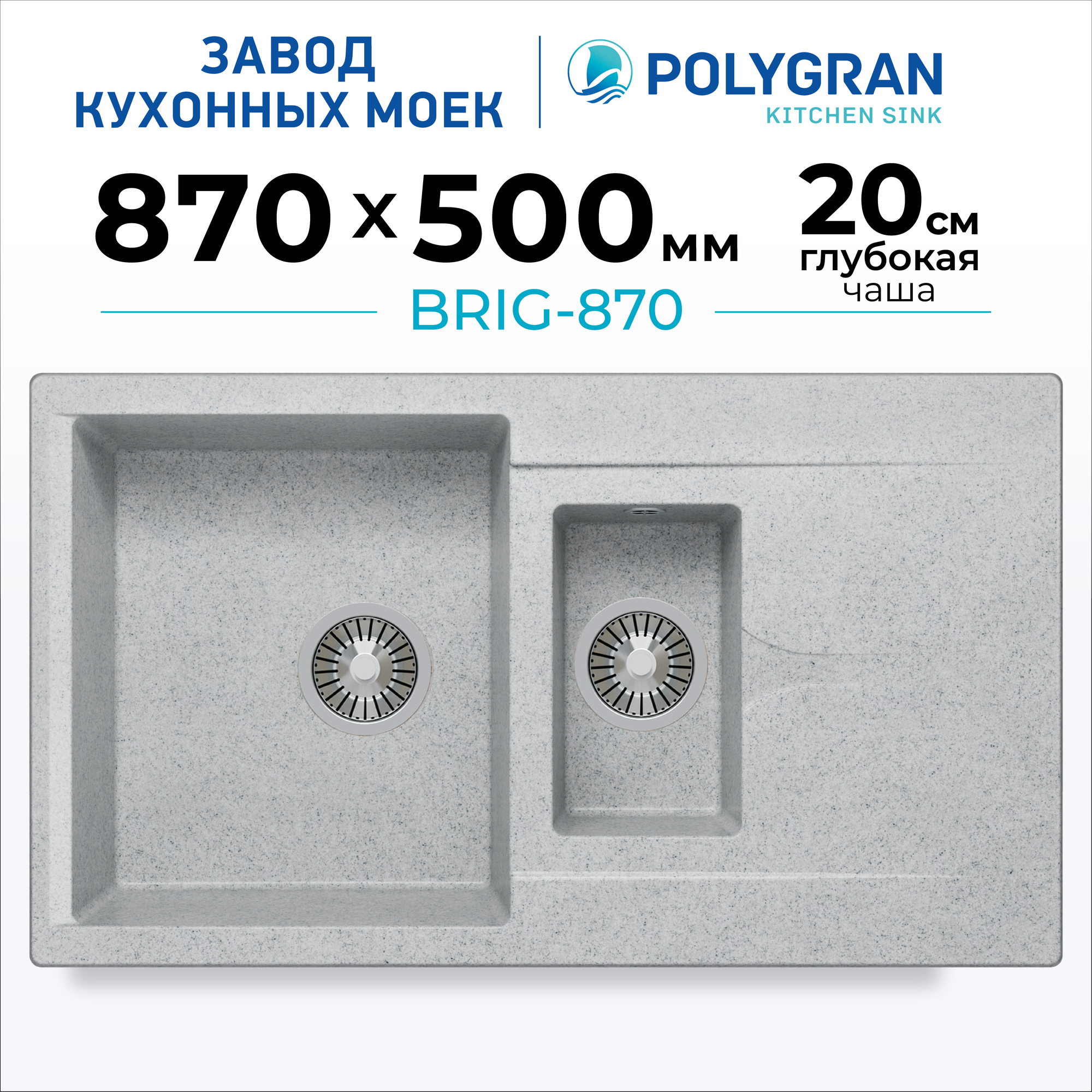 Кухонная мойка Polygran BRIG-870 (№314 Светло-серый) информация: