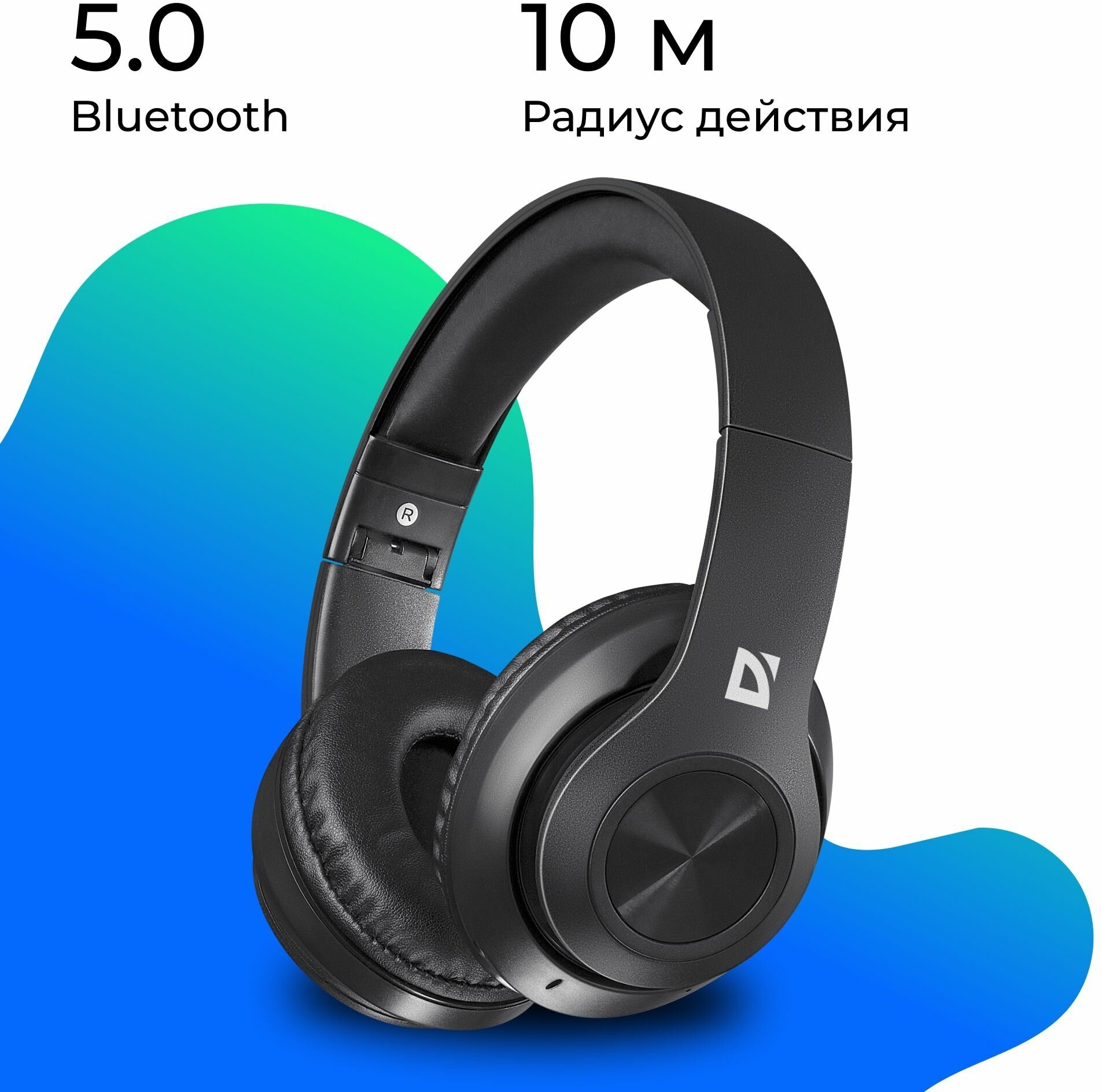 Наушники с микрофоном беспроводные Defender FreeMotion B552, Bluetooth, складные, MicroSD, разъем Micro-USB, черный ( Артикул 333522 ) 1 257 ₽