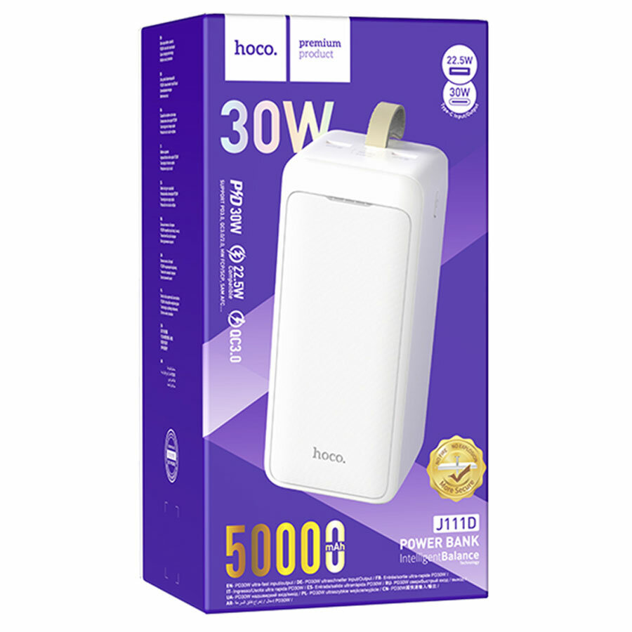 10 цен на Внешний аккумулятор Hoco J111D PD30 50000mAh белый