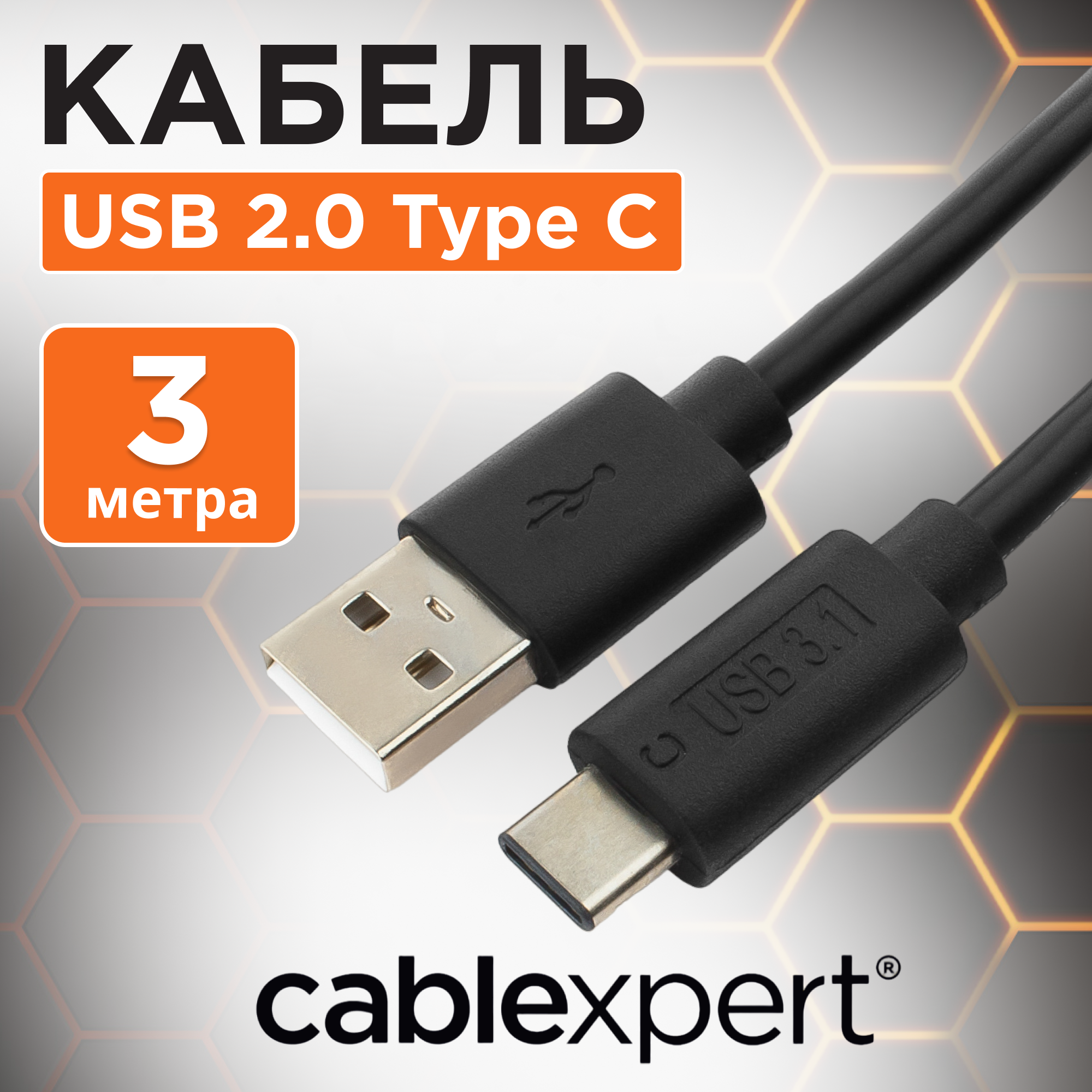 Кабель USB, USB 2.0AM/USB Type-C, длина 3 м, черный, Cablexpert 416 ₽