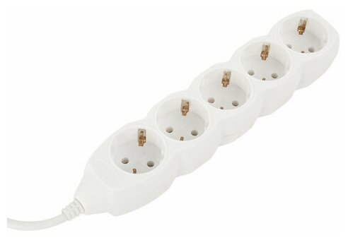 Удлинитель сетевой SONNEN U-155G, 5 розеток, c заземлением, 10 А, 5 м, белый, 511437 В комплекте: 1шт.