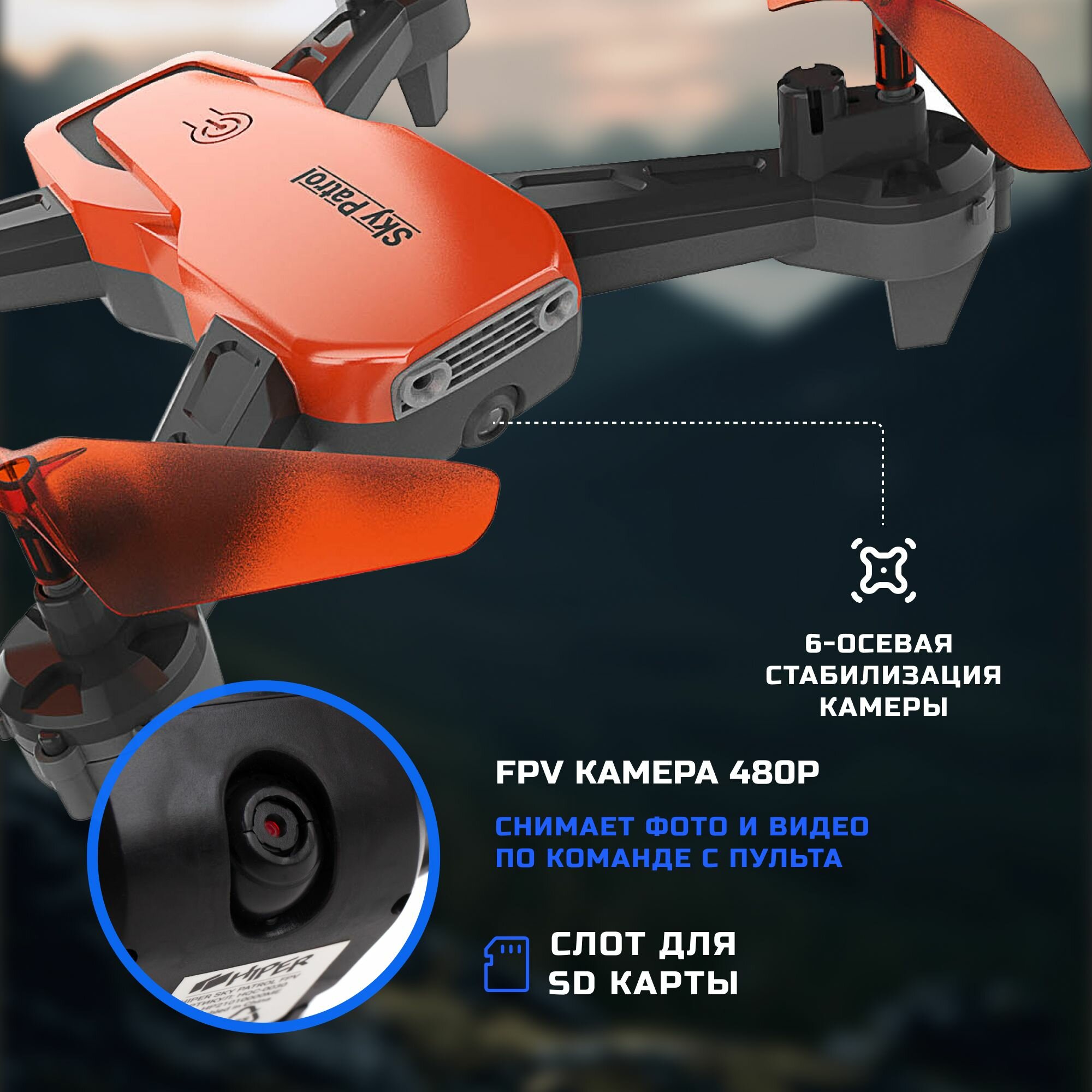 Радиоуправляемый квадрокоптер HIPER HQC-0030 SKY PATROL FPV, время полета более 17 минут, автоматическое удержание высоты, камера 480P, полет от первого лица, система стабилизации, 3 режима скорости, кульбиты, режим headless, оранжевый