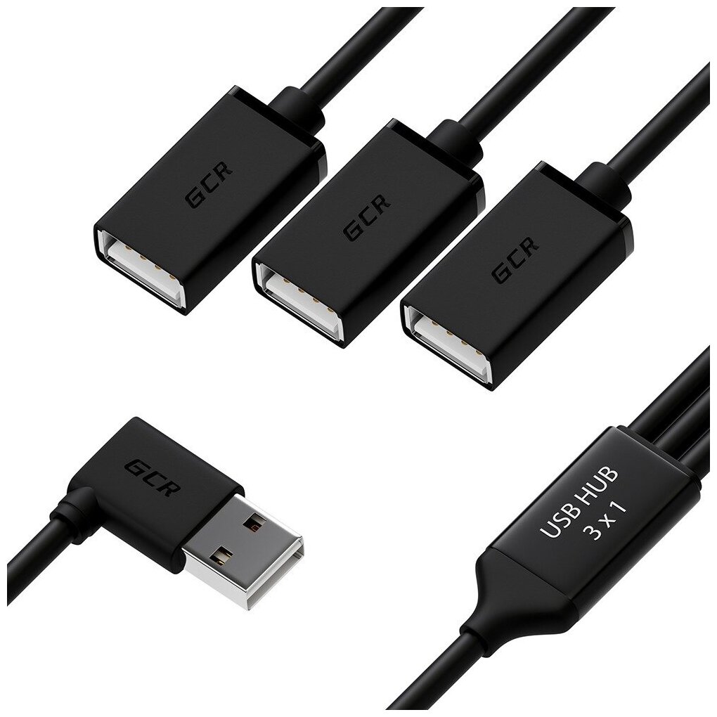 GCR USB Hub на 3 порта 0.35m гибкий двусторонний угловой AM / 3 х AF черный