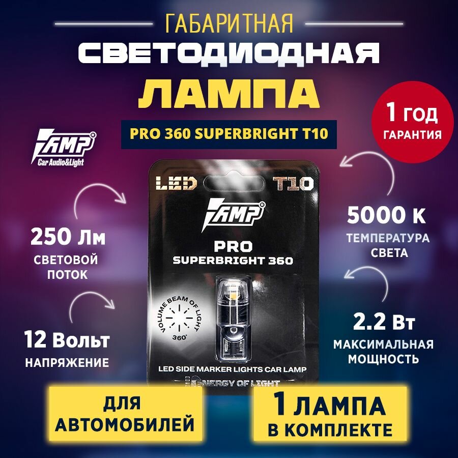 10 цен на Светодиод габаритный AMP PRO 360 SuperBright T10