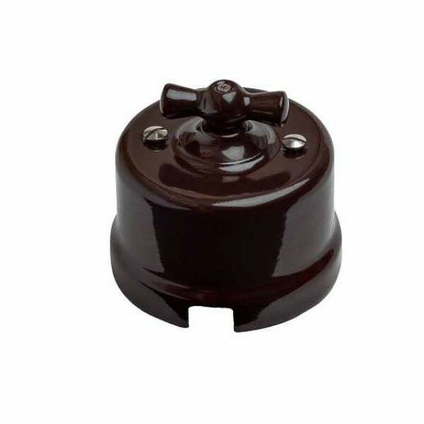 Выключатель проходной поворотный 1-кл. ОП Лизетта 10А IP20 ретро 2 полож. керамика корич. Bironi B1-201-02