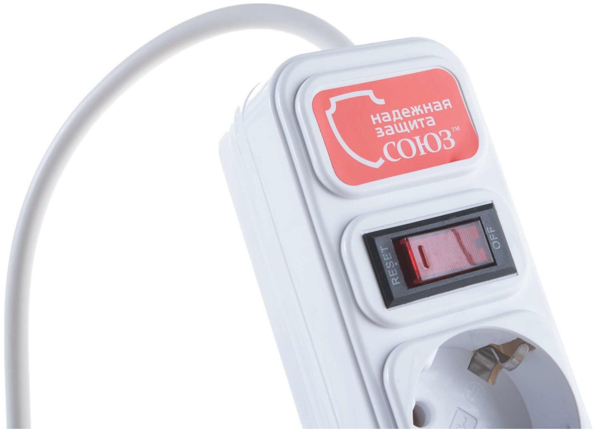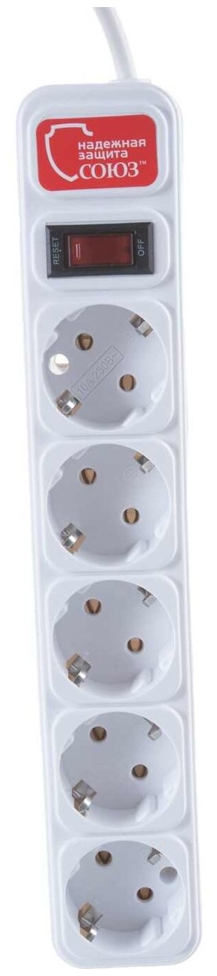 Сетевой фильтр Союз 1324, 5 розеток, с/з, 10А белый 1.5 м