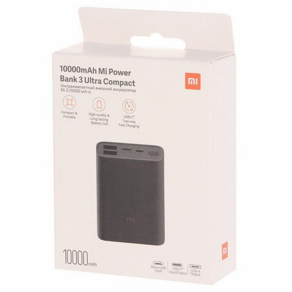 Внешний аккумулятор Xiaomi Mi Power Bank 3 Ultra Compact, 10 000 мАч, черный (BHR4412GL) информация: