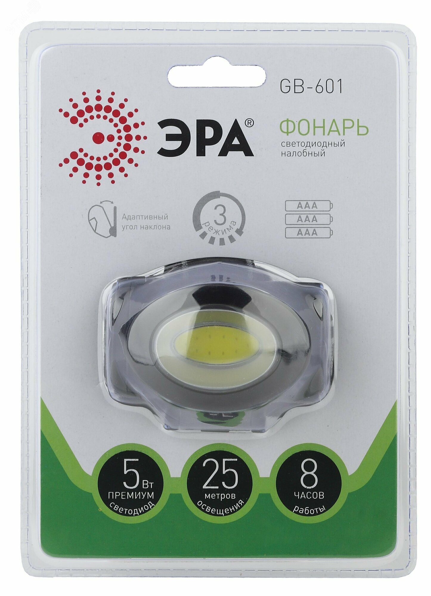 Фонарь GB-601 ЭРА налобный (5Вт Сов, 3хААА, 3 режима, бл) (10/1) .