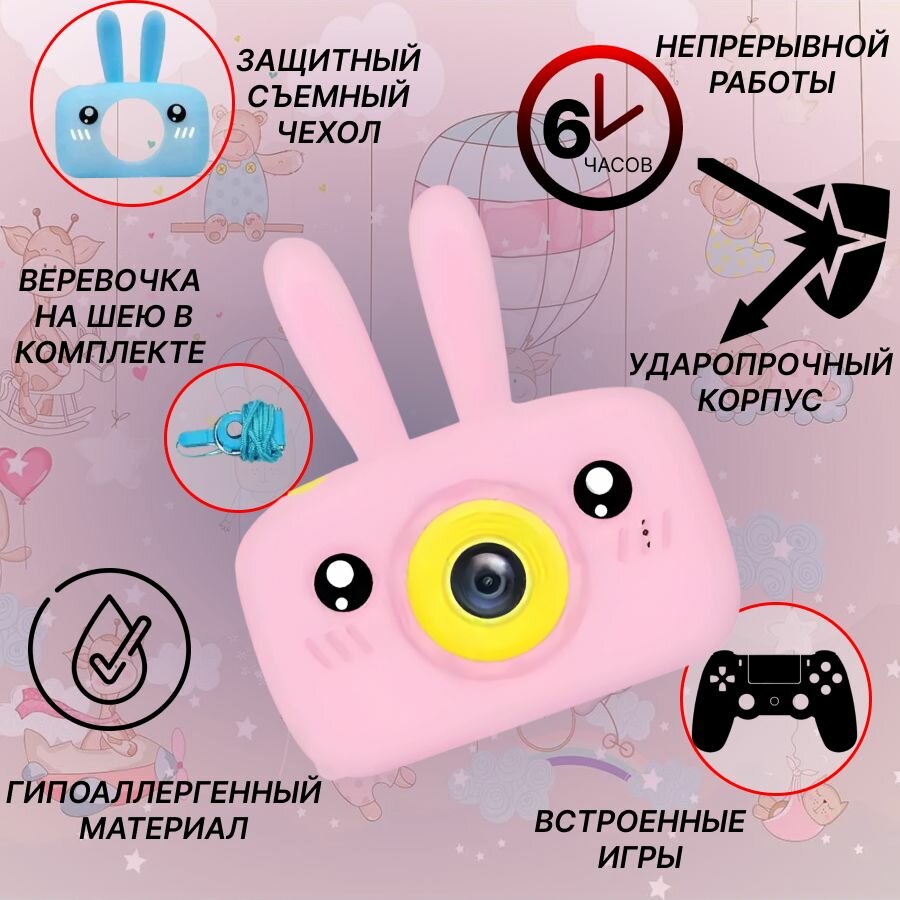 Фотоаппарат детский цифровой зайчик розовый / фотокамера для детей информация: