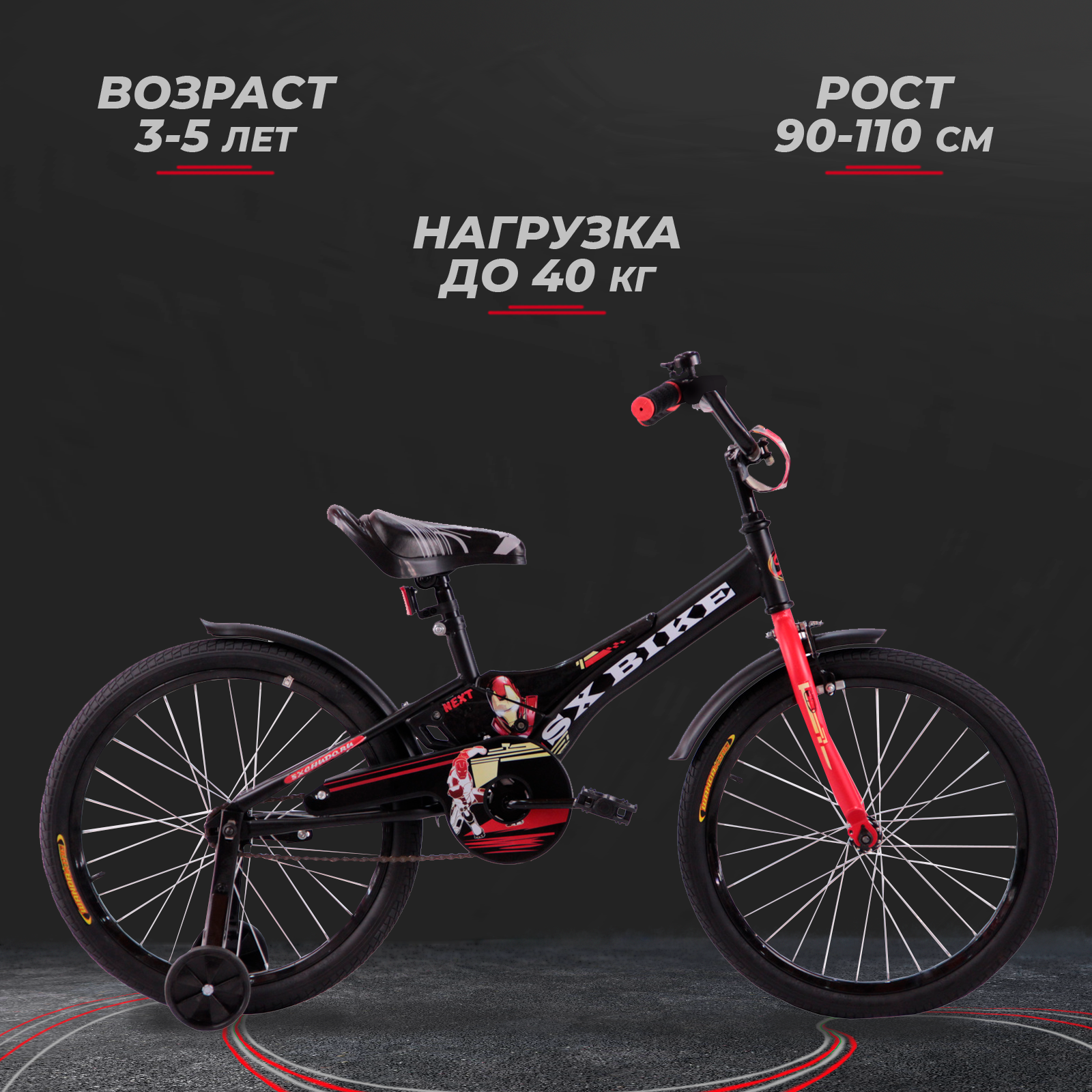 Велосипед детский 14" Next 2.0 черный, доп.колеса информация: